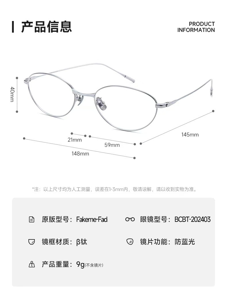 新しいFakemチタンフレームfade楕円フレームすっぴん光学鏡フレームレトロbc 202403近視女性モデル