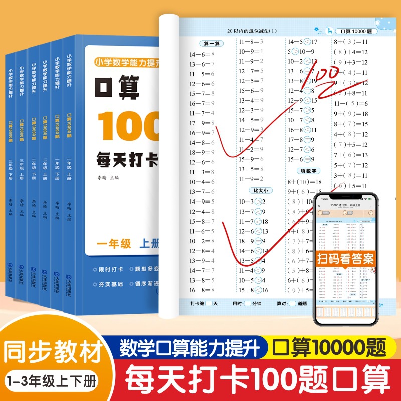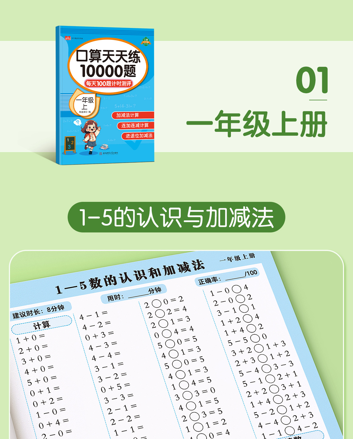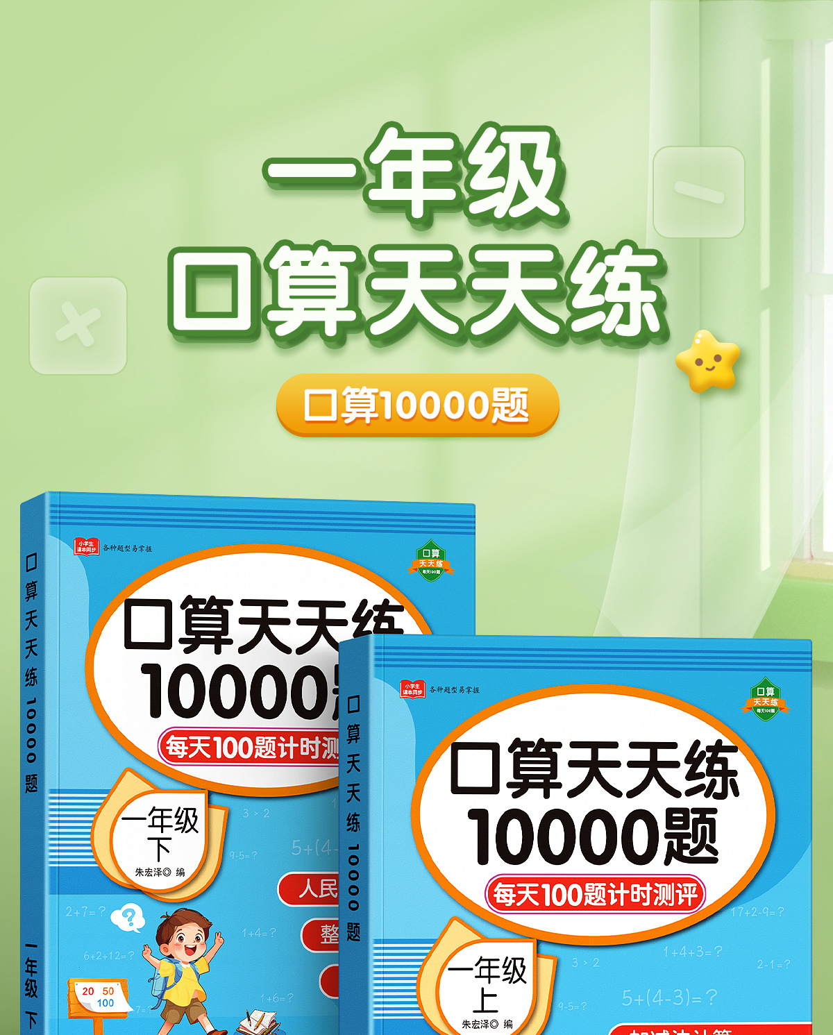 小学生口算10000题一二三年级上下册人教版数学同步练习册天天练