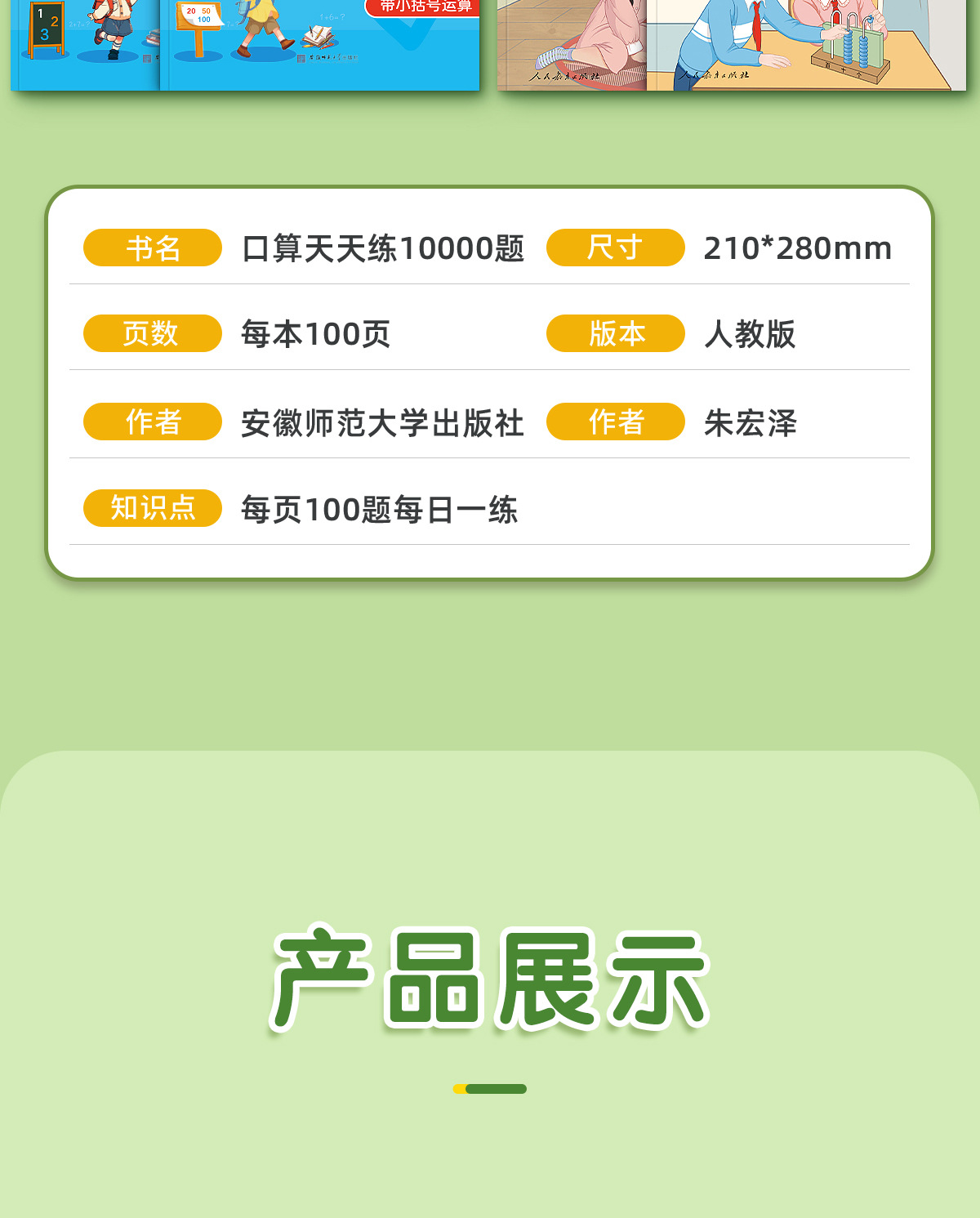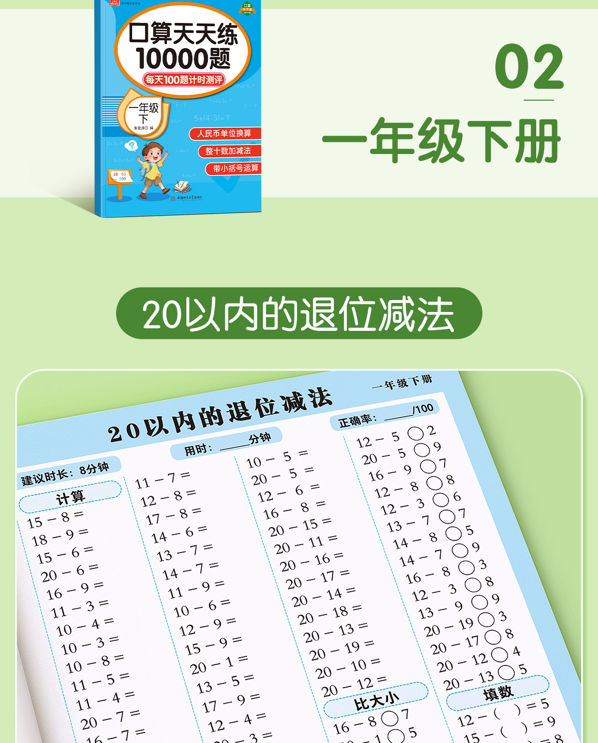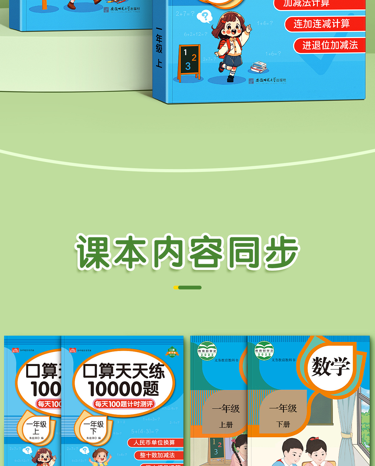 小学生口算10000题一二三年级上下册人教版数学同步练习册天天练
