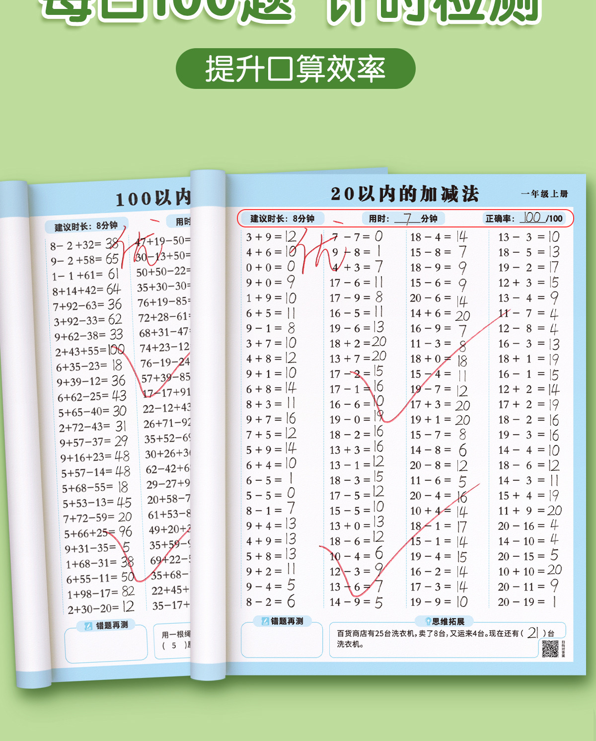 100以内加減算専門練習帳口算は毎日一年生の数学口算問題カードを練習して退位計に入る