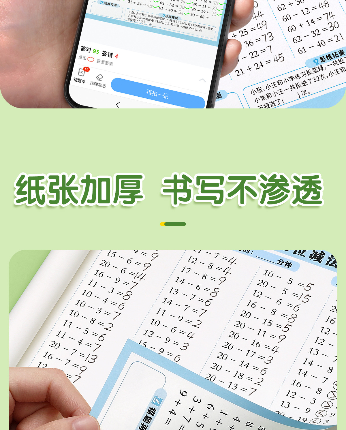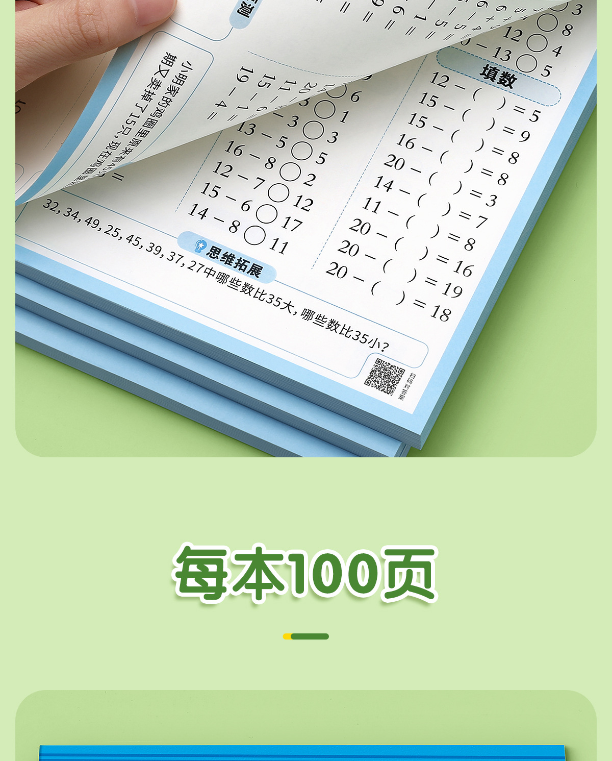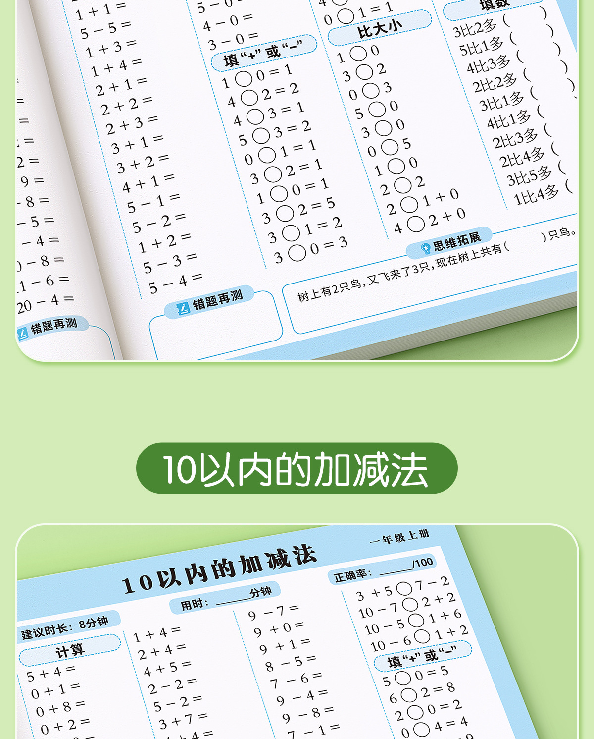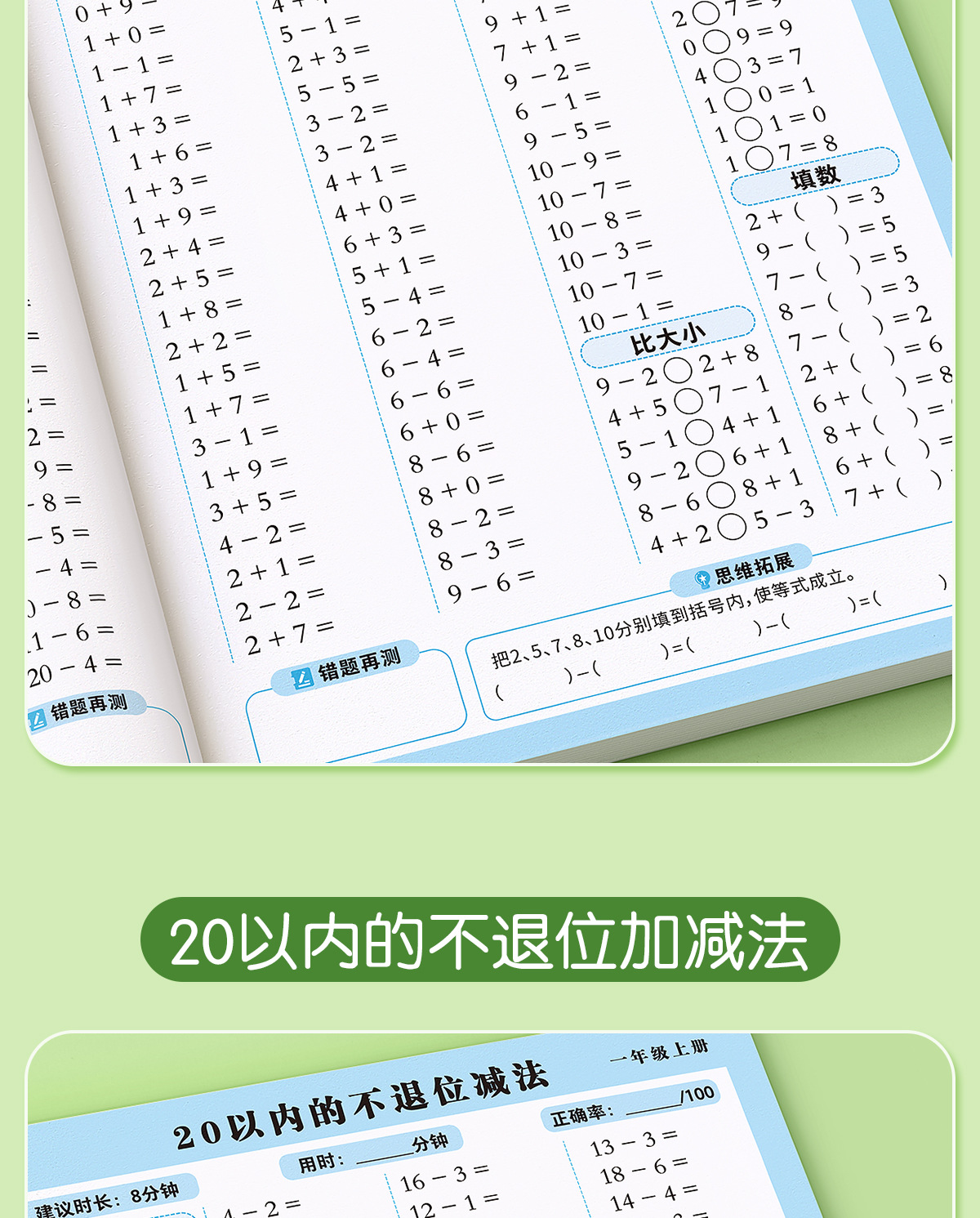横式縦式口算問題10/20/50/100以内加減算毎日幼稚園数学問題練習帳