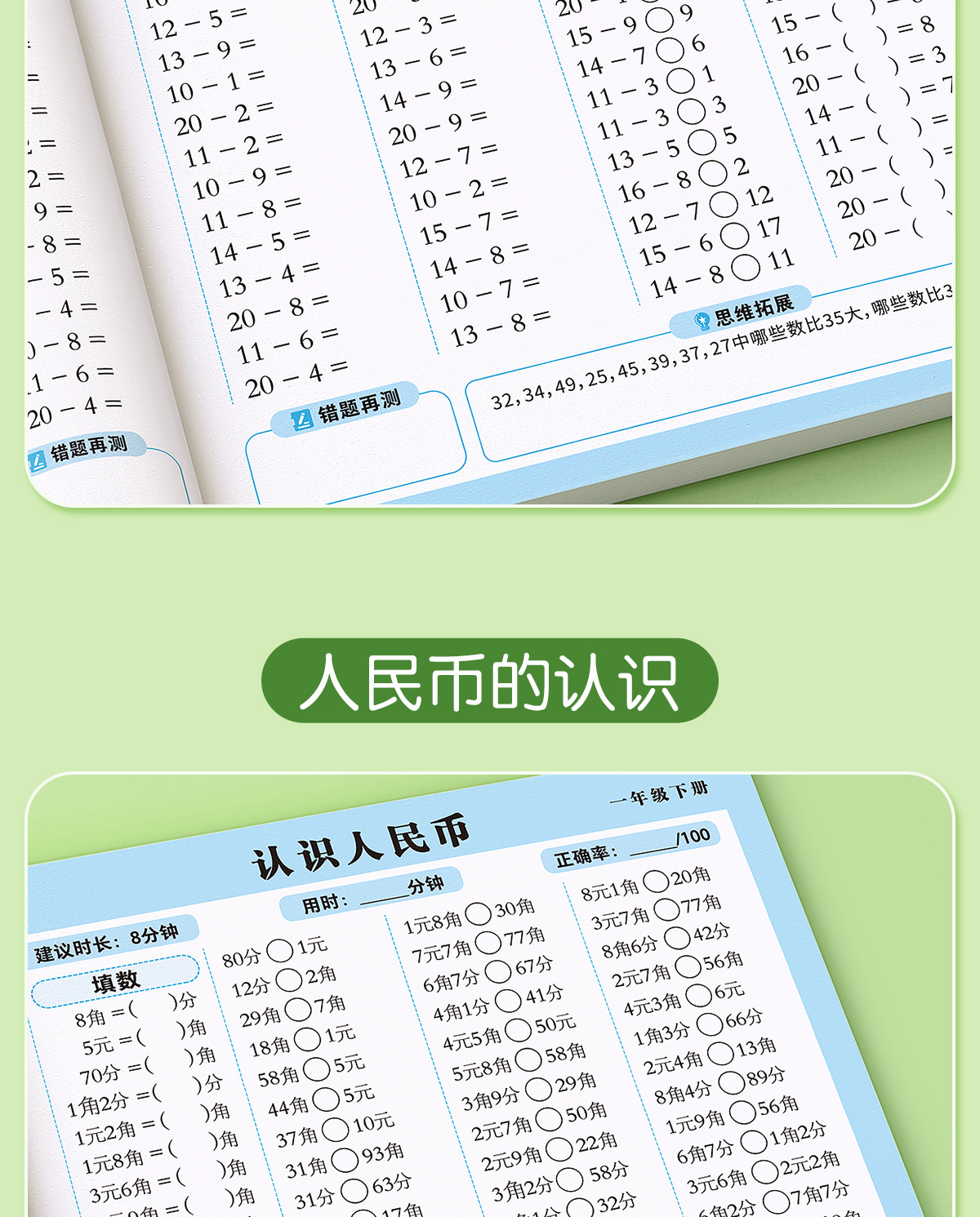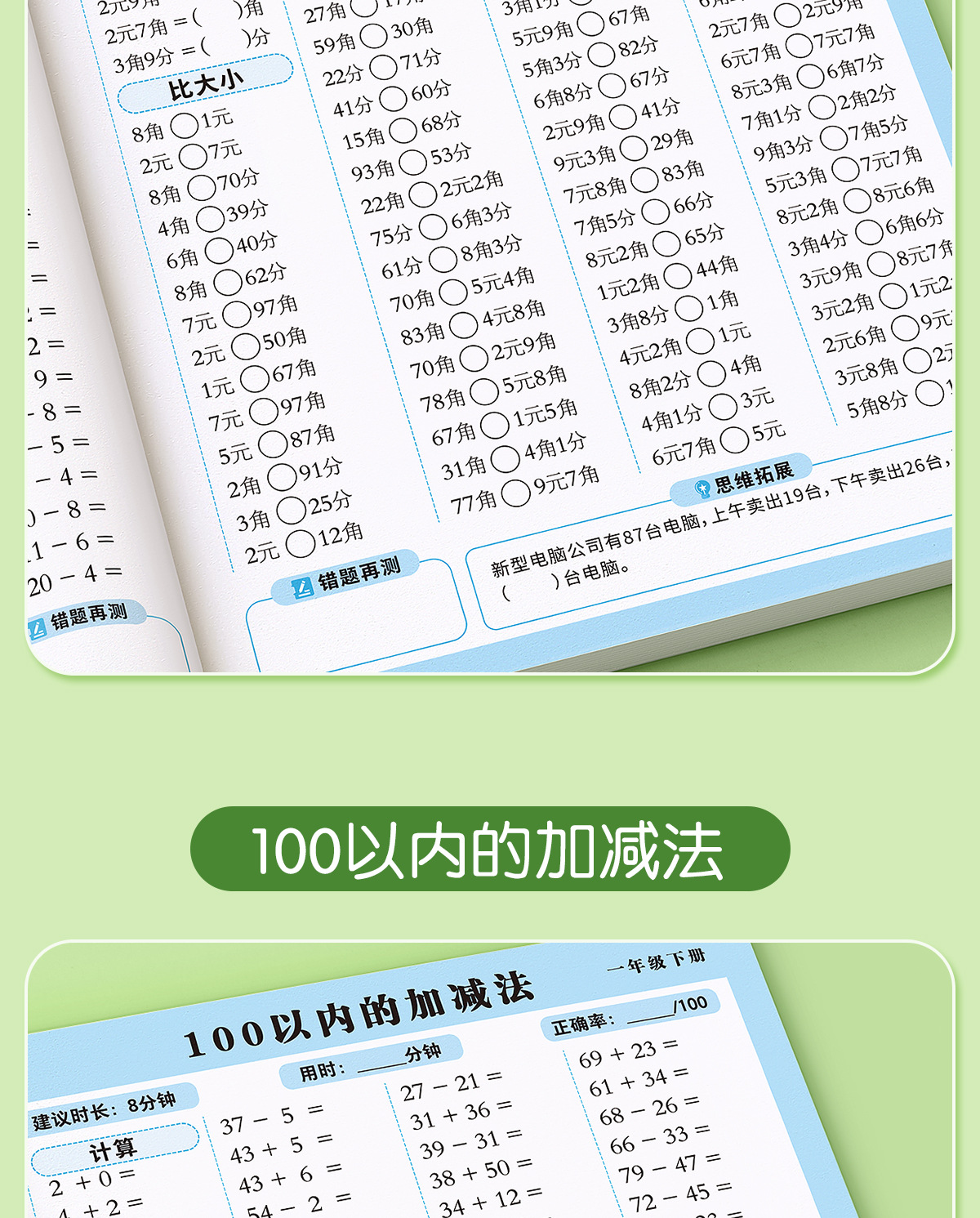 二年生の数学の口算は毎日加減算練習帳100以内の混合演算数学の口算問題カードを練習します。