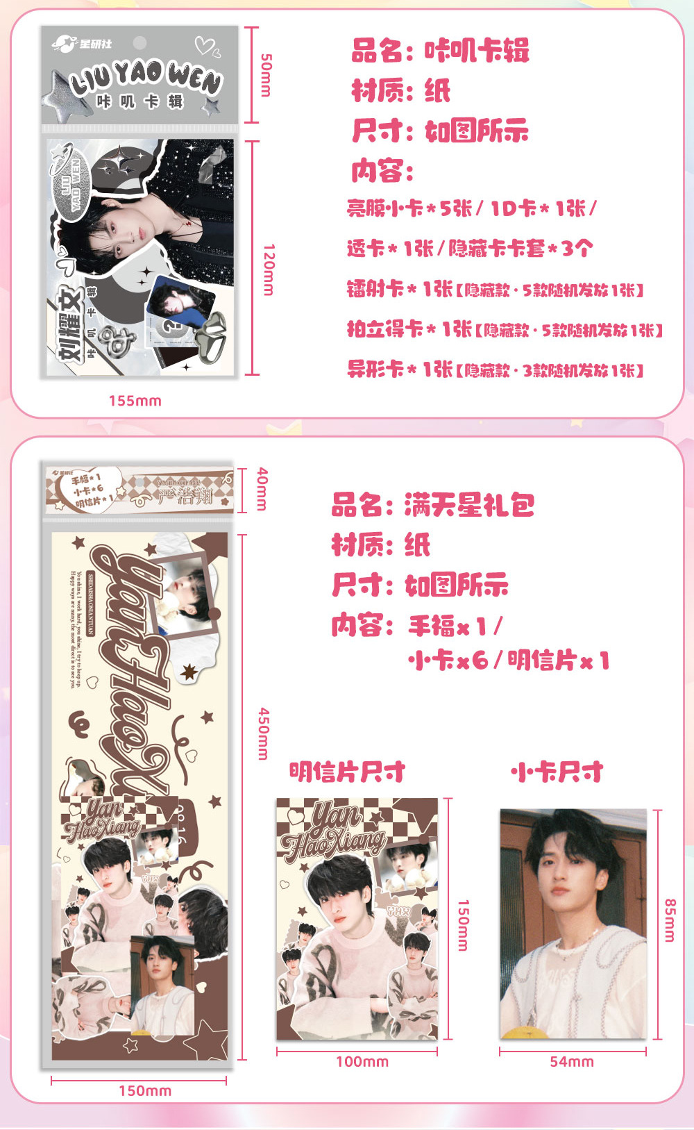 新作スターの剥がせる写真応援パック、フォトカード、ギフトパック、スタンプ、周辺グッズ、自作サイン入りポストカード、カード