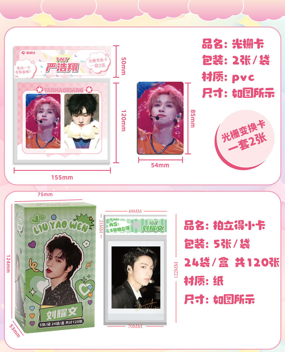 卸売りpvc透卡鞠婧祓い趙露思白鹿虞書欣透卡愛豆スターアニメ小カード6枚一包
