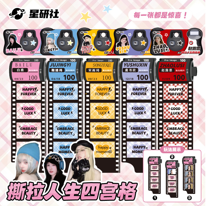 新款明星四宫格撕拉小卡 拍立得底片撕撕乐小卡盲盒撕拉小卡底纸