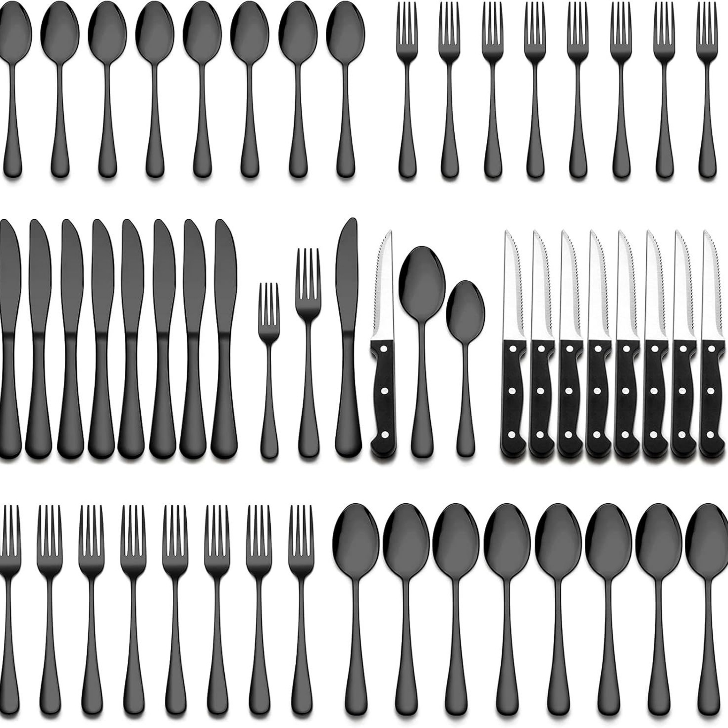 国境を越えて人気がある1010ステンレスナイフとフォークスプーン24/48セット洋食黒ステーキナイフとフォーク食器セット