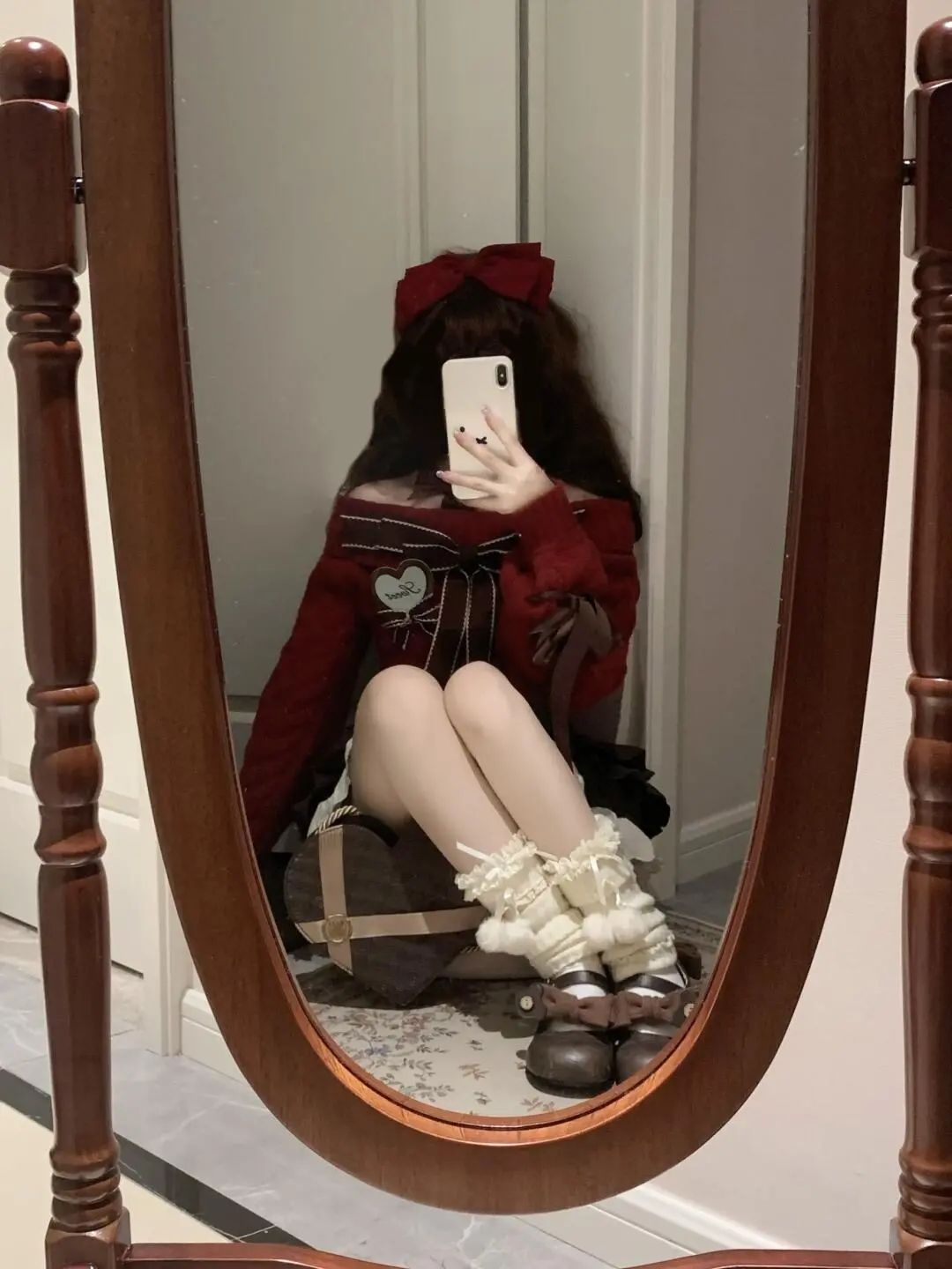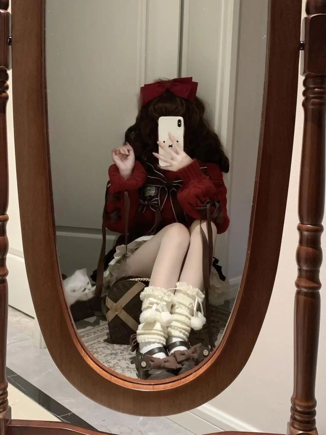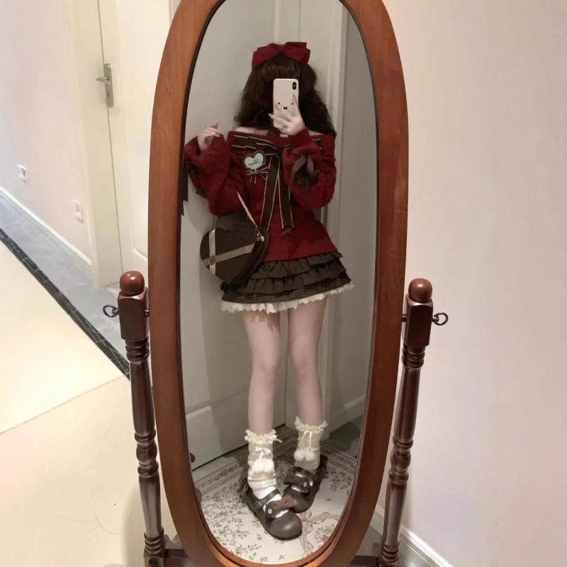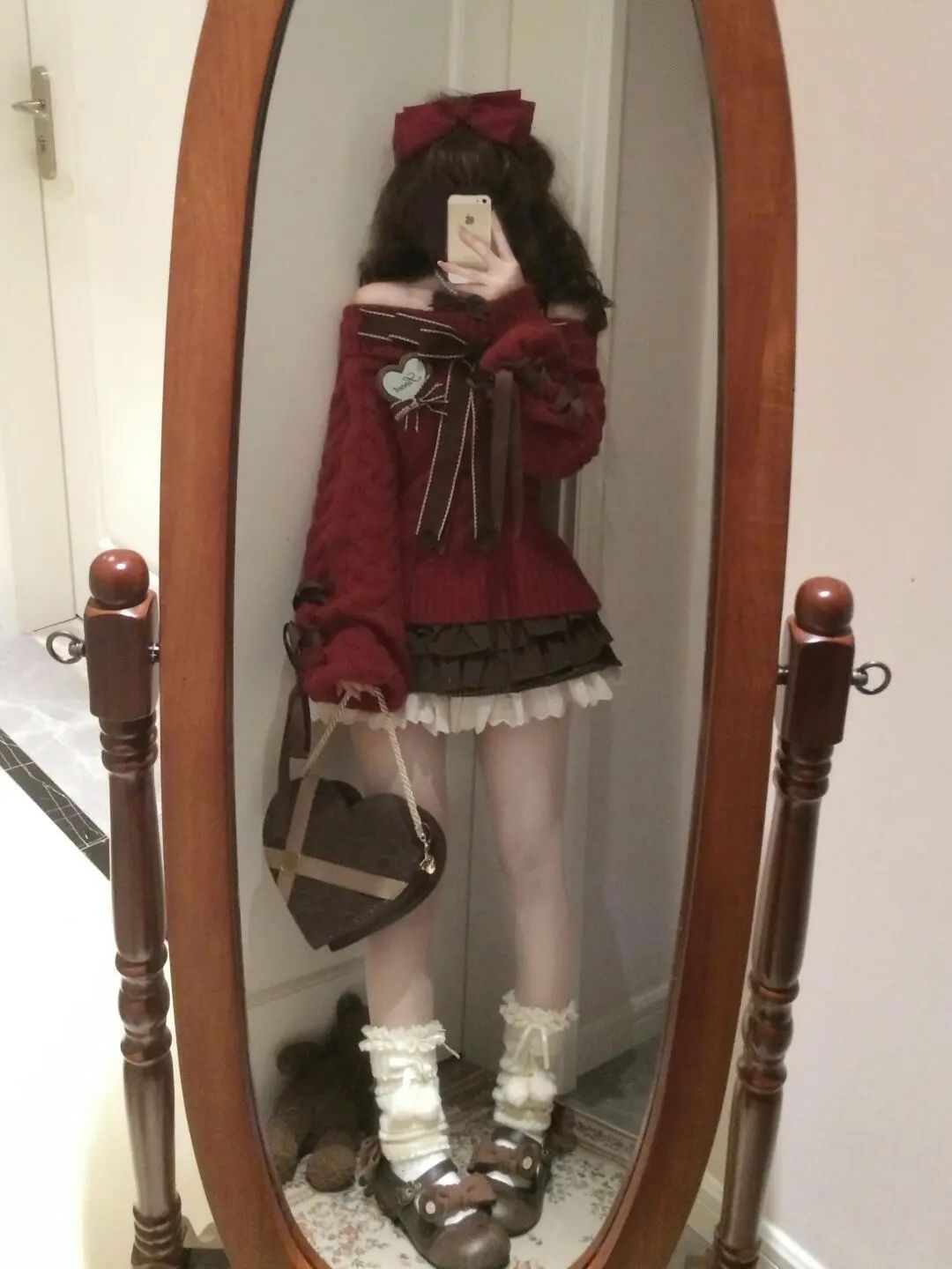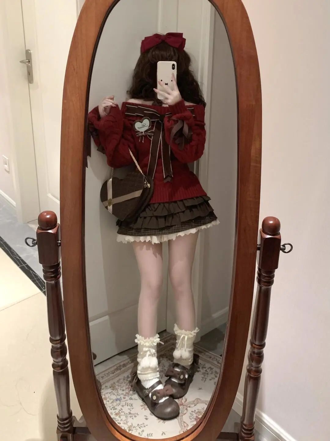 クリスマスはシックで美しい小柄な服を着て、甘いギャルの赤いセーターのケーキの蓬蓬のスカートの2つのセットを着ます。