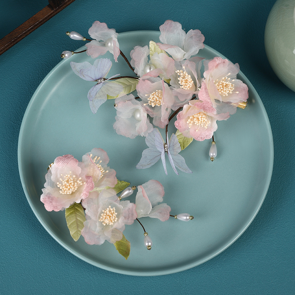 2025オリジナルデザイン新古風仙気手作り絹花漢服頭飾り祝日演出化粧造パーマ髪飾り