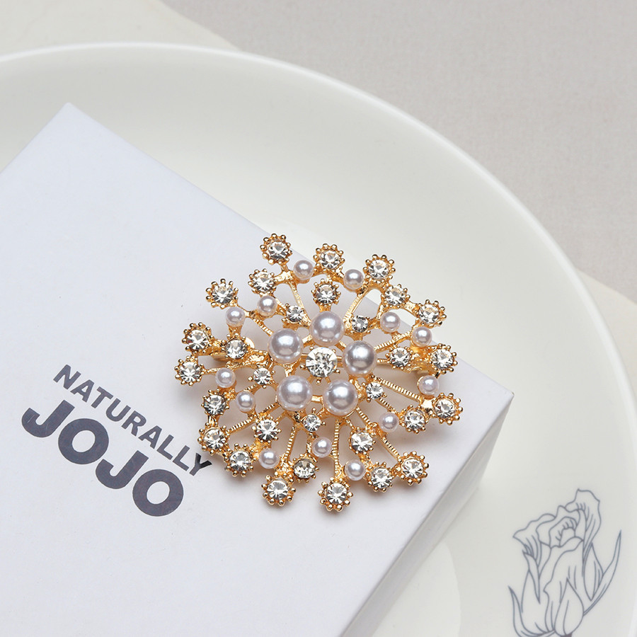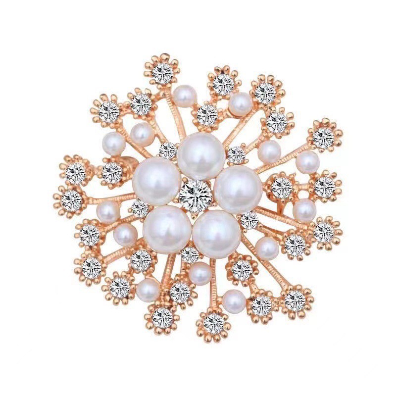 色褪せにくい高品質レディース服飾アクセサリー スノーフレークパールクリスタルブローチ 美しいフラワーブローチピン 在庫あり