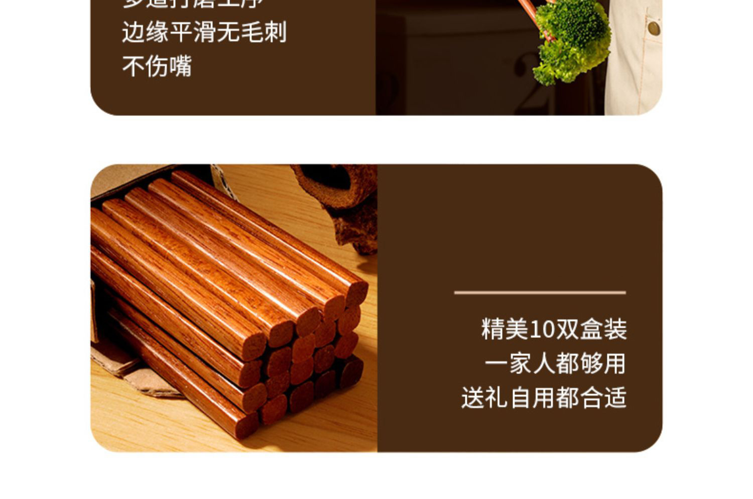 中国式手羽木箸家庭用高級中国風紅檀木福箸ギフトボックス食器滑り止め無漆箸