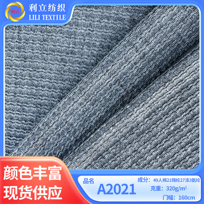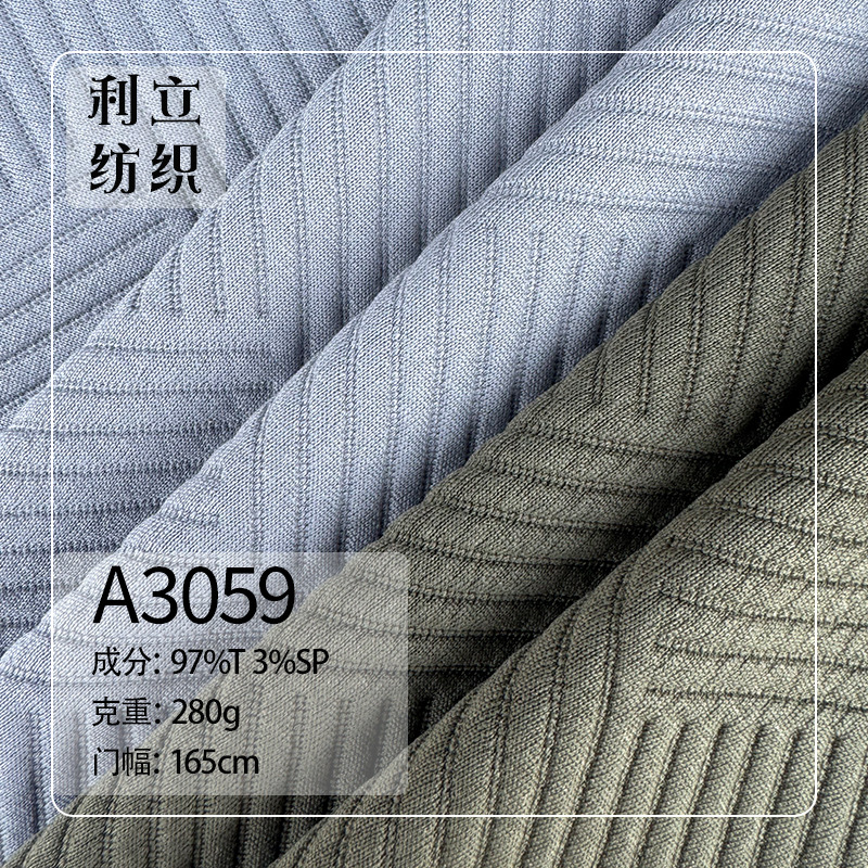現物フランスの細いリブ260g人綿弾力ファッション坑条ニット生地女装スカートシャツ生地
