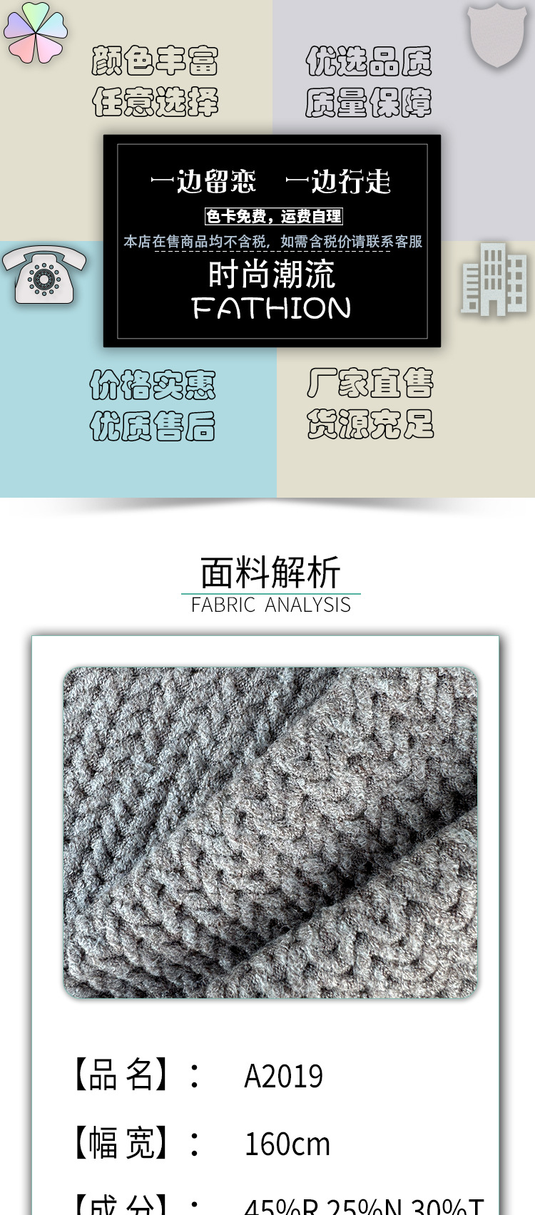 300g魚鱗波紋セーター毛糸生地粗針弾力布保温カーディガンコート生地