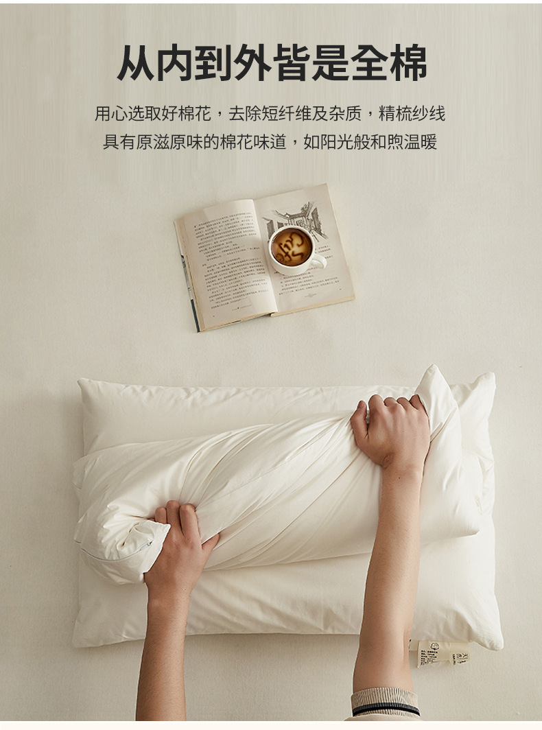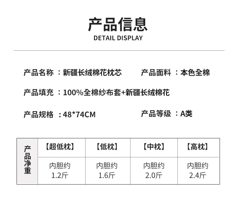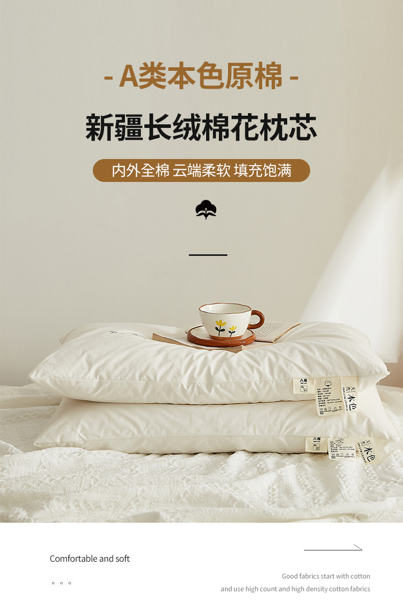 母婴级A类100%新疆棉里外全棉枕芯棉花枕头酒店宿舍护颈家用枕头