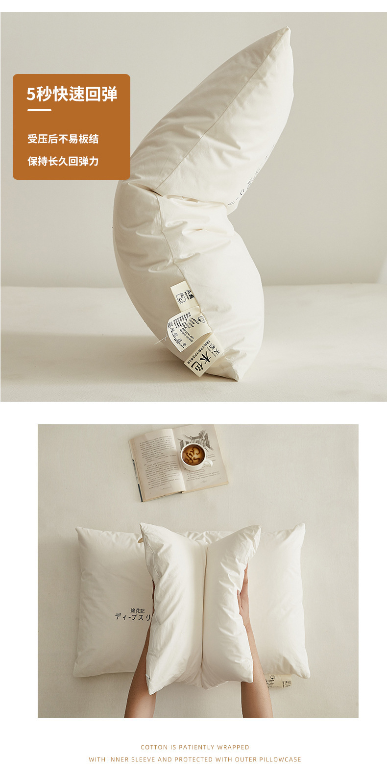 クラスA母子クラスの全綿枕芯日本式原綿深睡眠枕芯家庭用民宿ホテル枕ペア