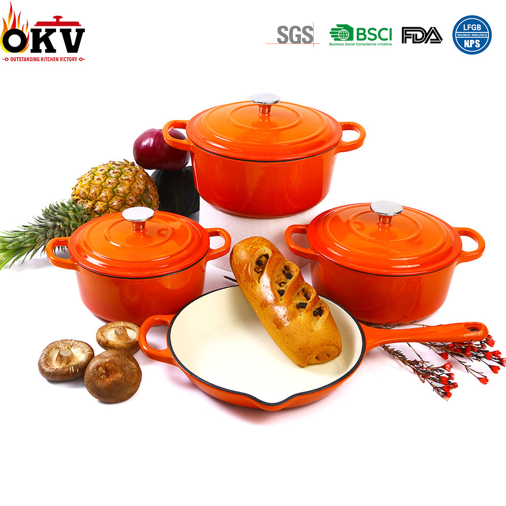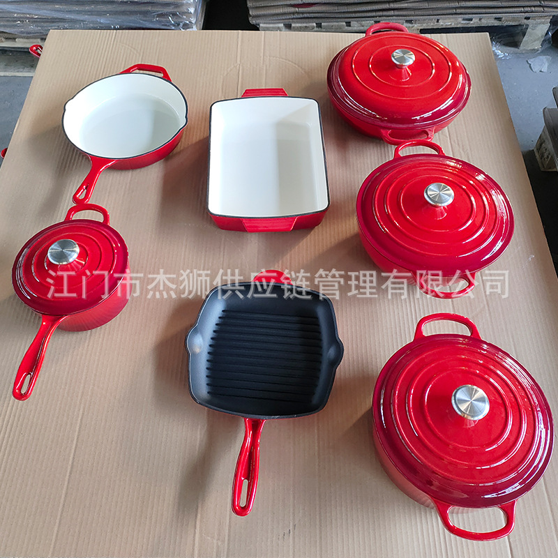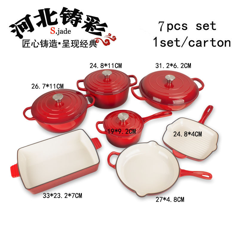 輸出鋳鉄エナメル鍋セット7ピースエナメルポットホットポットスチークプレートセット