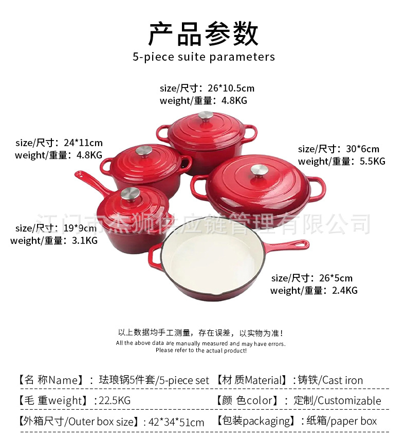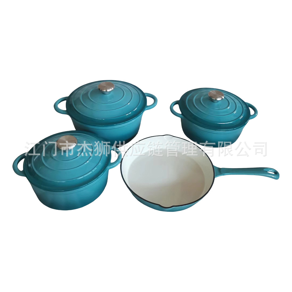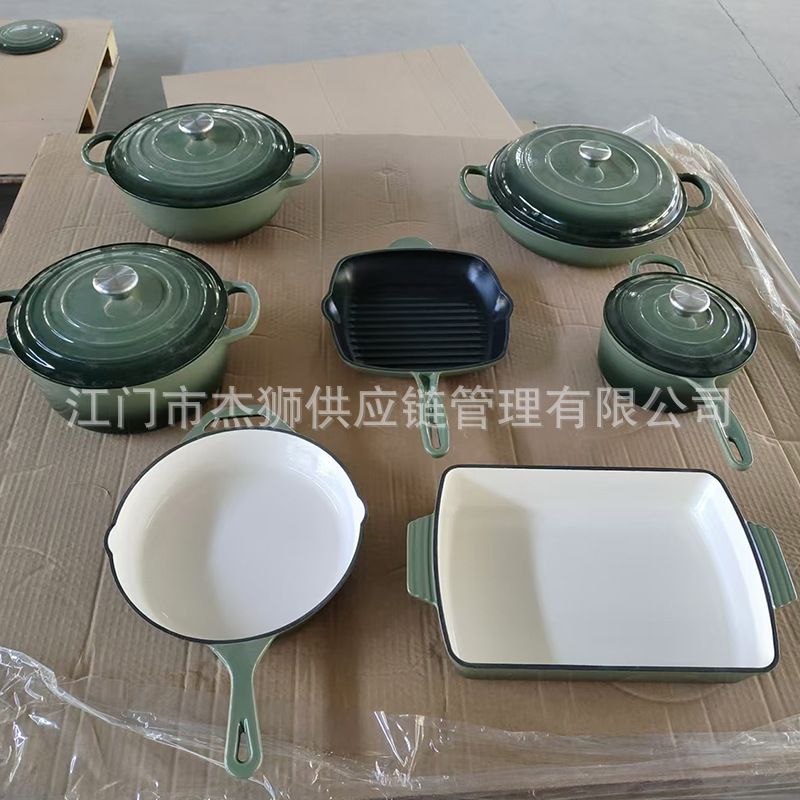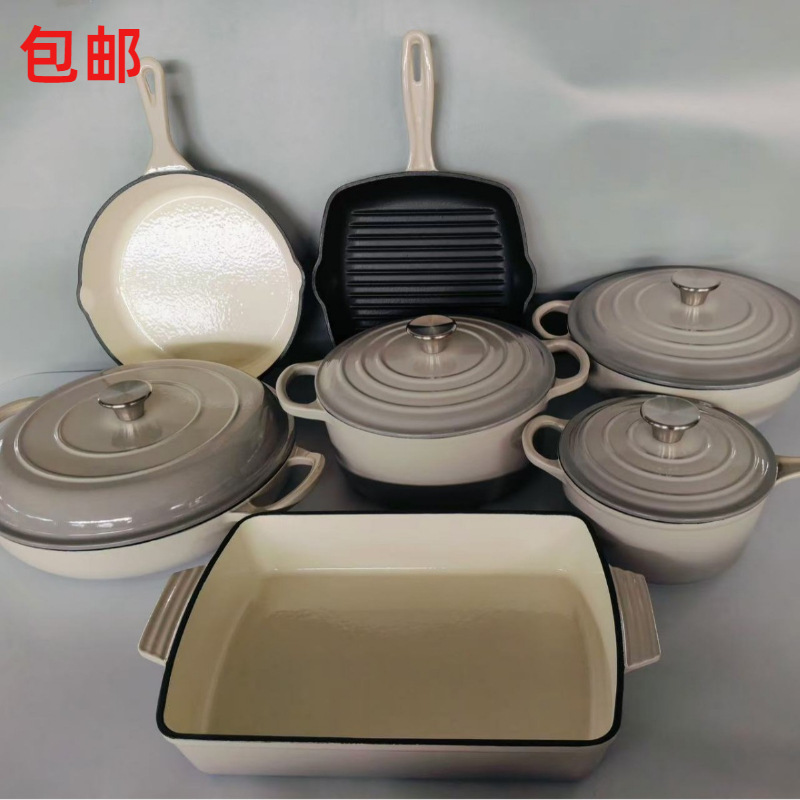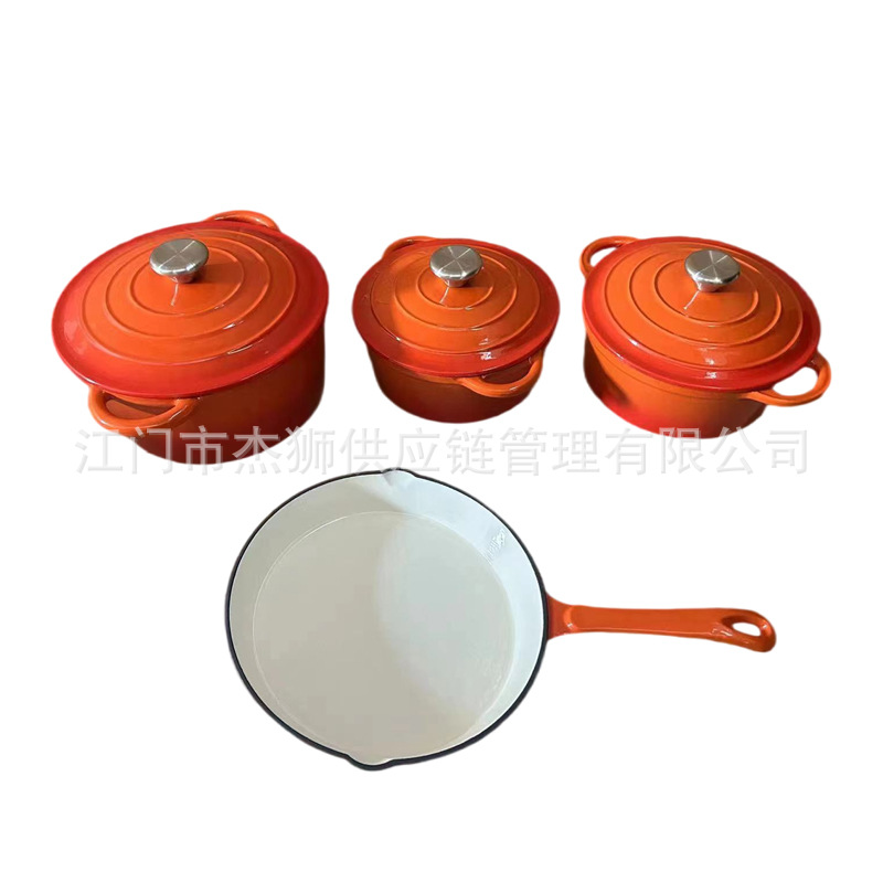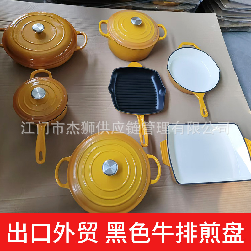 出口外贸铸铁珐琅搪瓷套装pcs家用炖煎锅汤炖锅海鲜盘三件套锅具