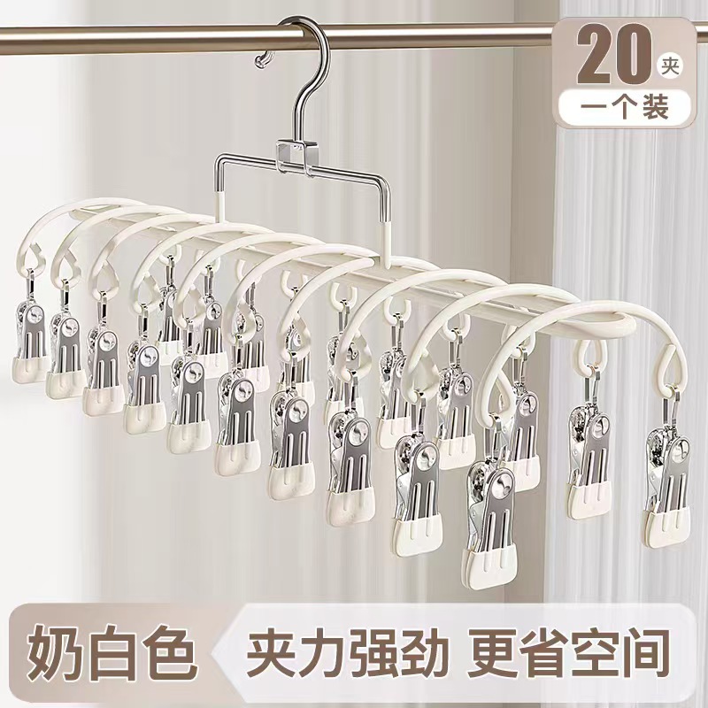 不锈钢挂袜子晾晒二十夹多夹子学生宿舍晒袜子家用阳台防风晾衣架