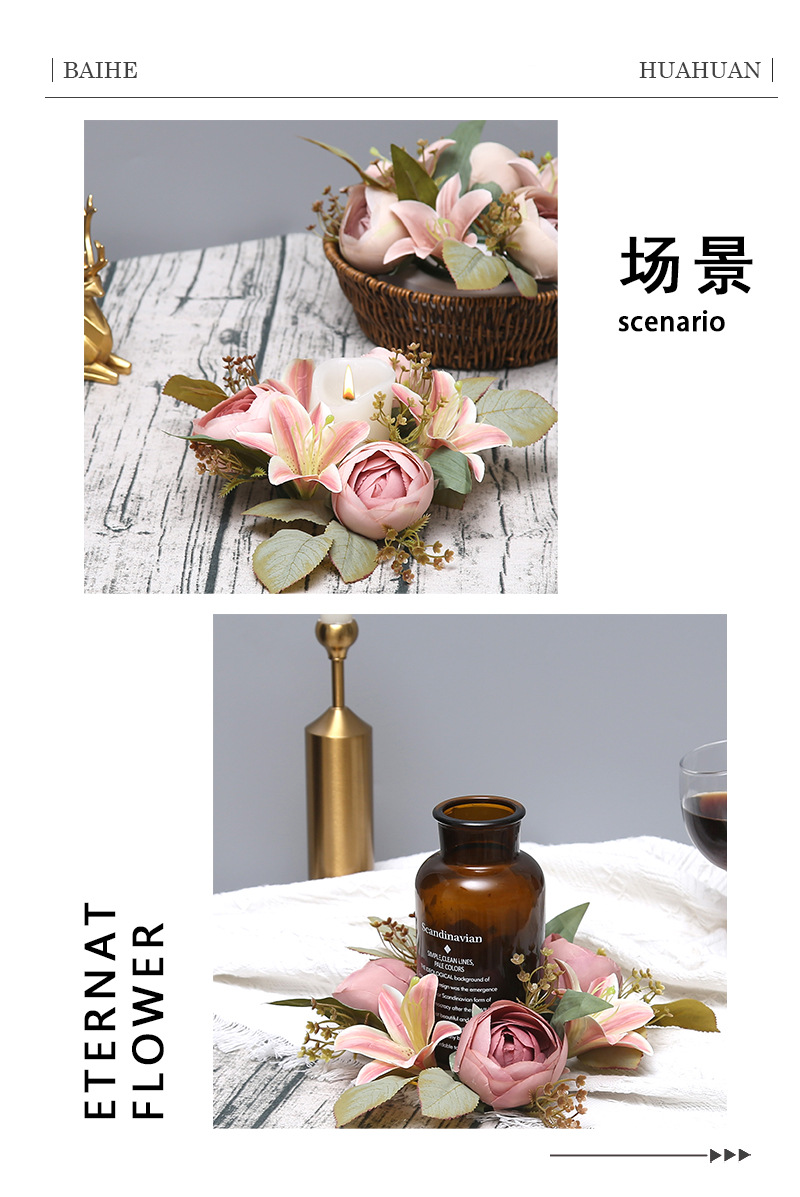 国境を越えたシミュレーション百合燭台花輪デスクトップ装飾品高級感燭台花輪家庭ロマンチックな結婚式装飾