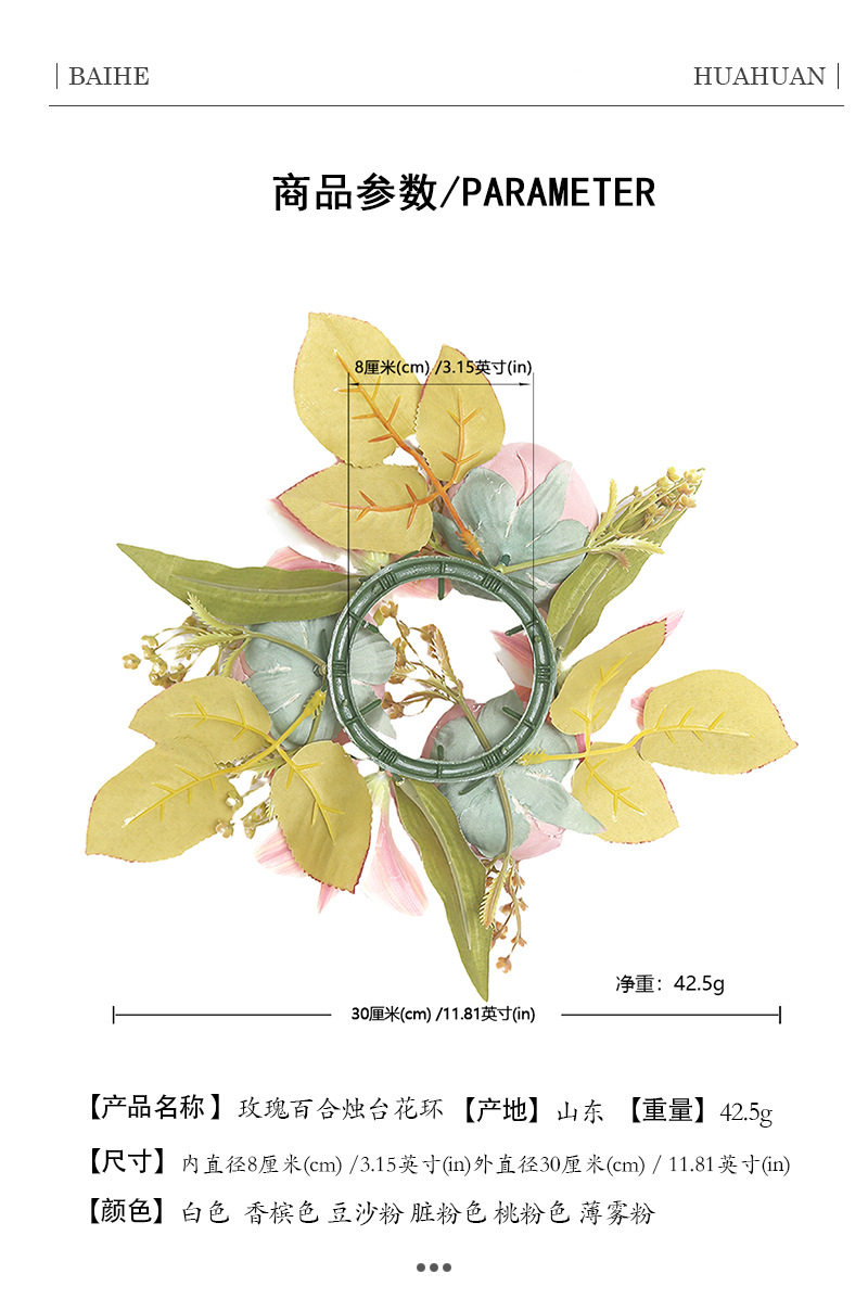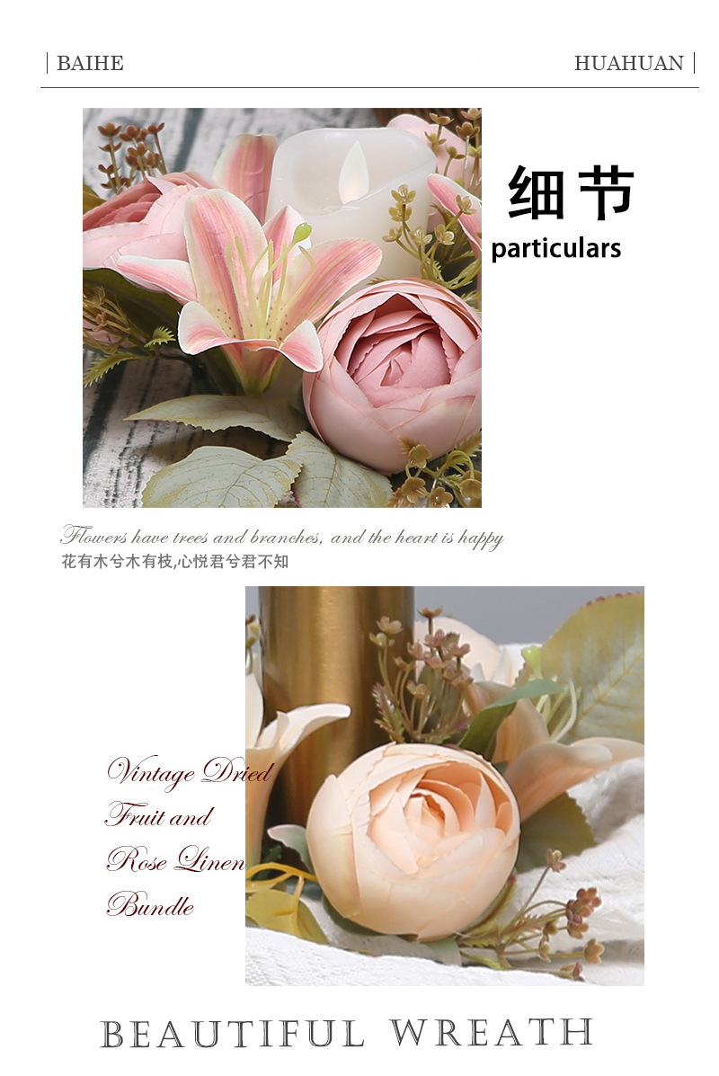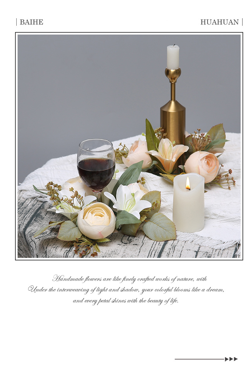 ins风小野花花环情人节玫瑰餐桌派对装饰烛台花环植物假花花环