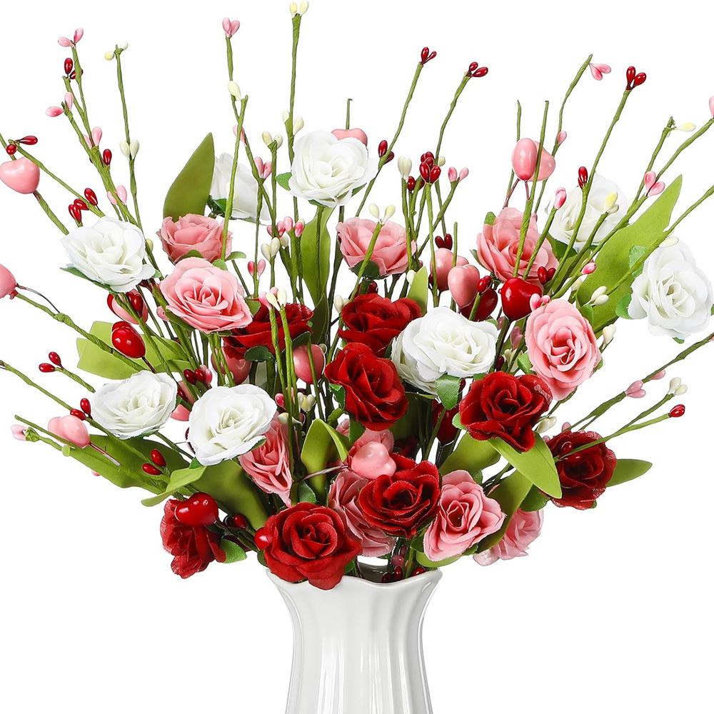 仿真情人节玫瑰爱心插枝绿叶家居餐桌布置跨境母亲节插花摆件装饰
