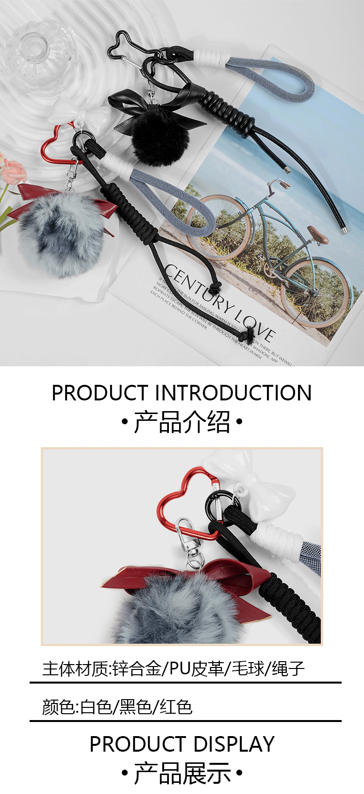 国境を越えた起爆金y 2k個性的で洗練された暗黒豹紋毛玉皮革アクリル蝶ネクタイ吊り紐DIYキーホルダー