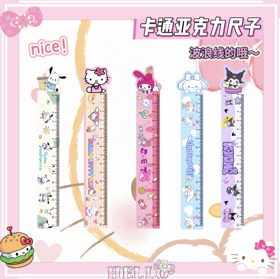 かわいいサンリオkt猫ロック直尺学生15cm高颜値漫画絵画アクリル両面物差し
