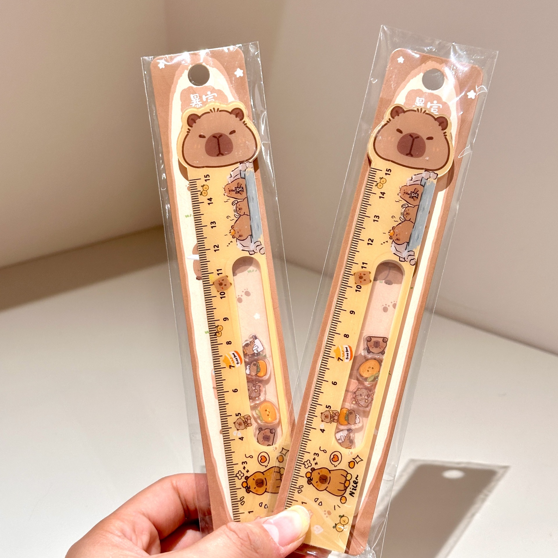カード皮入油流砂直尺かわいいカピバラ文房具小学生マッピング透明直尺アニメ20cm定規