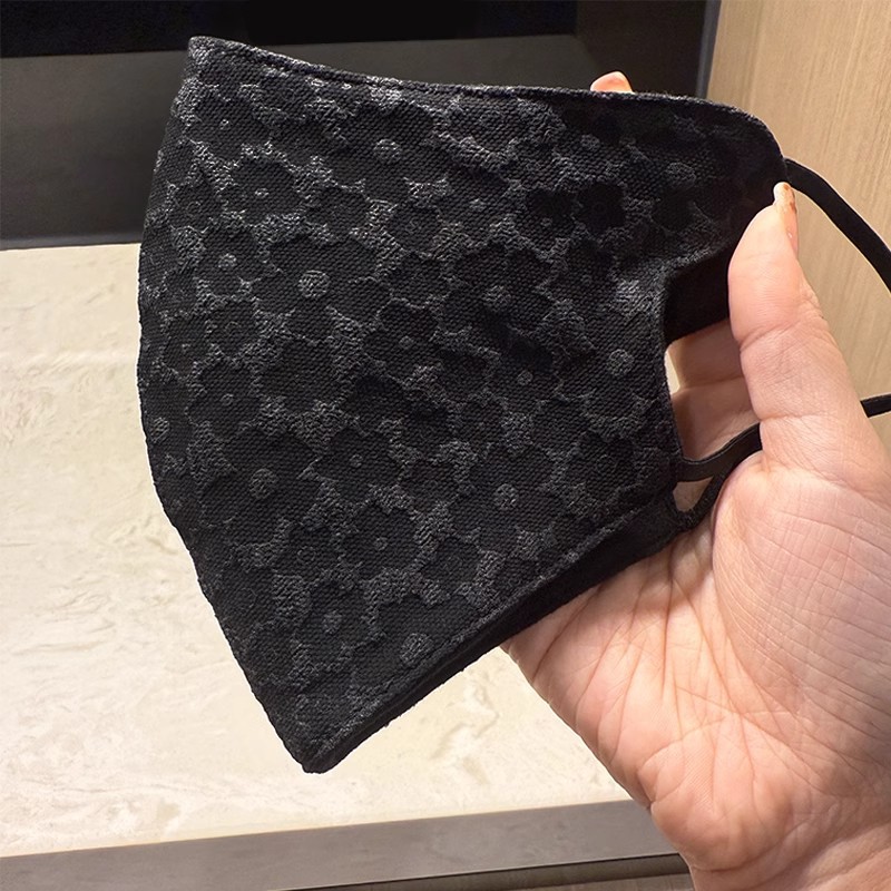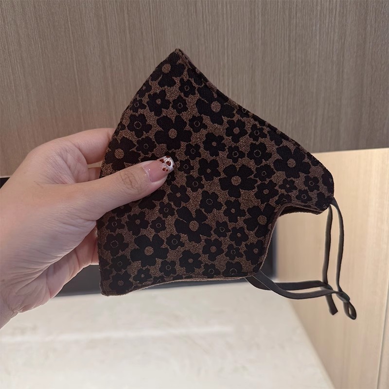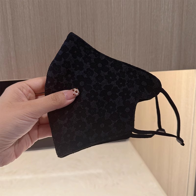 ファッションベルベットの質感の小さな花の保温マスク女性秋冬の暖かい肌の防風防寒高颜値気質マスク
