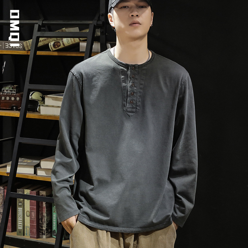 330g重いポンドの長袖のtシャツの男性の秋の大きいサイズのファッションのブランドのアメリカのゆったりしているレジャーのヘンリーの襟の底のシャツのファッション