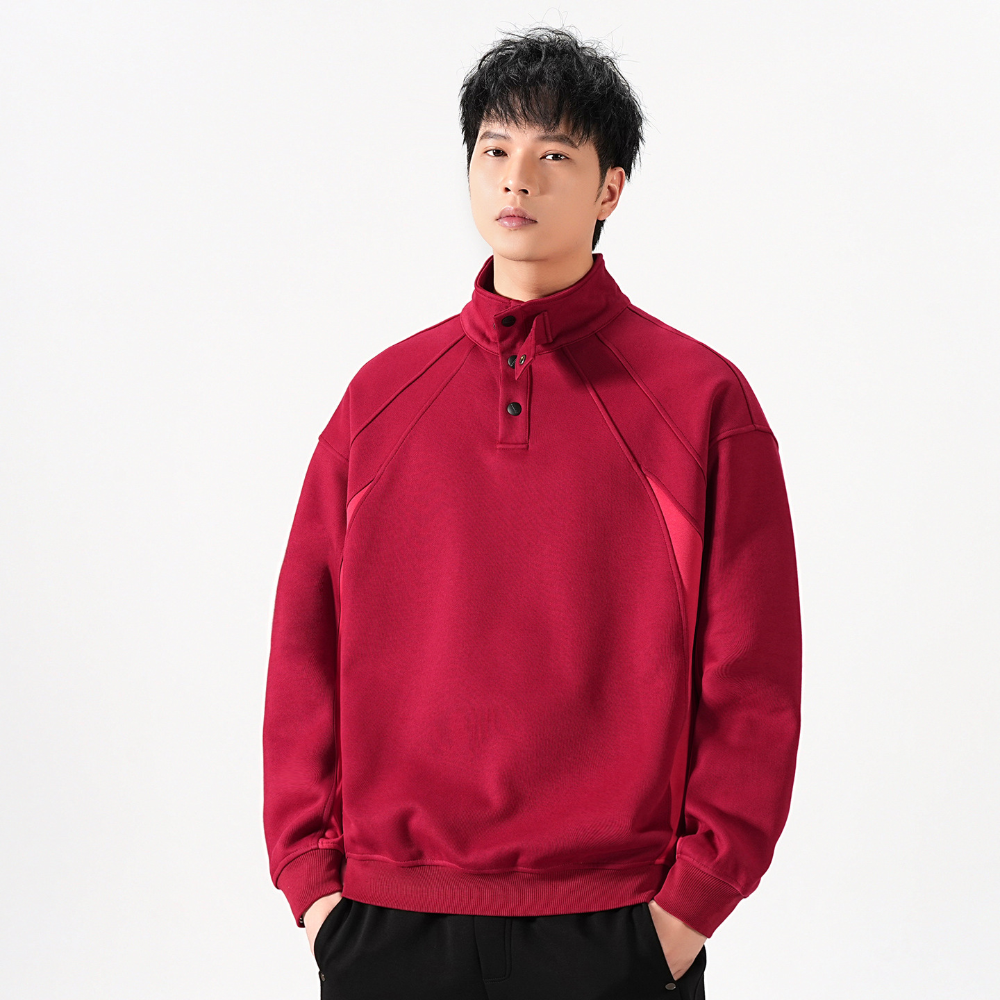 小众设计感高领卫衣美式潮流休闲宽松百搭T恤长袖上衣男士高级感