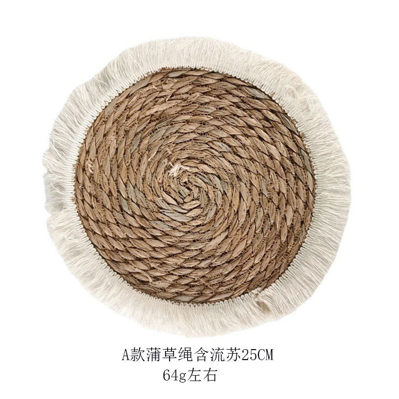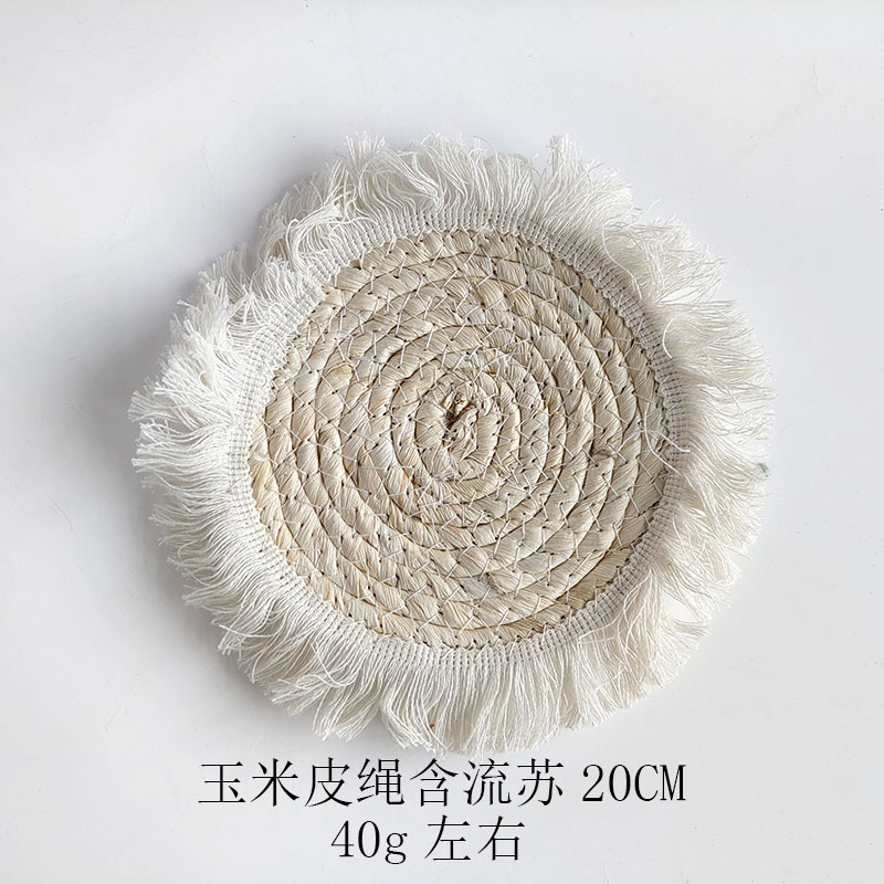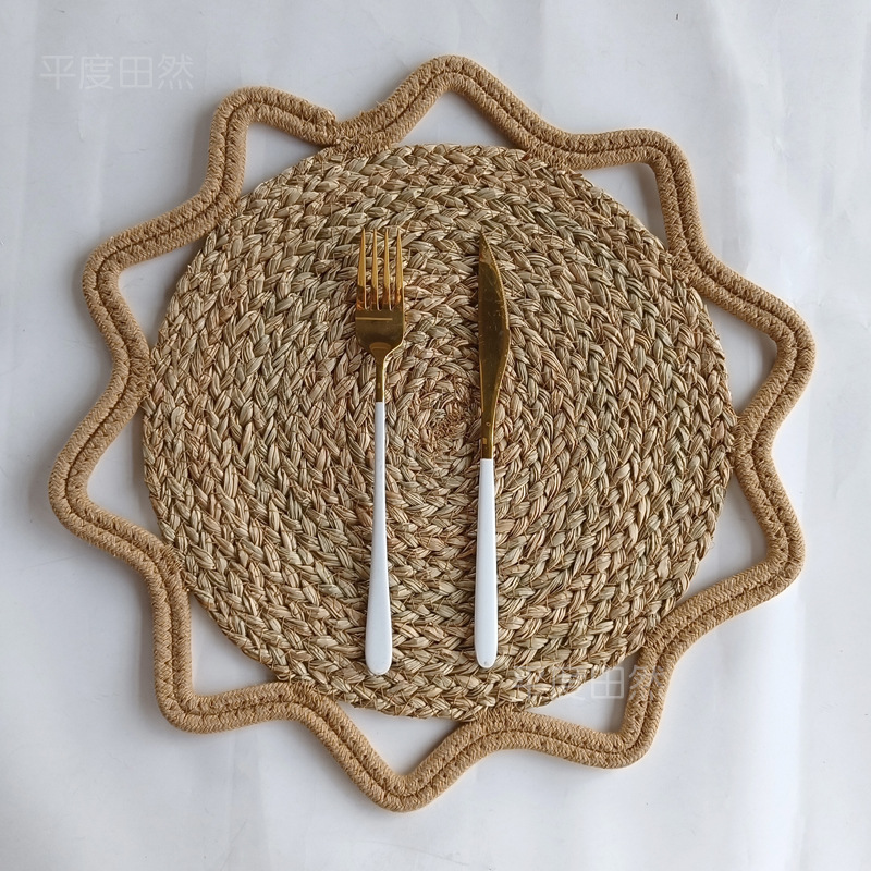 草編み水草トウモロコシ皮食マット田園風情編みテーブルマット綿ロープ縁コースター花形芸術装飾マット