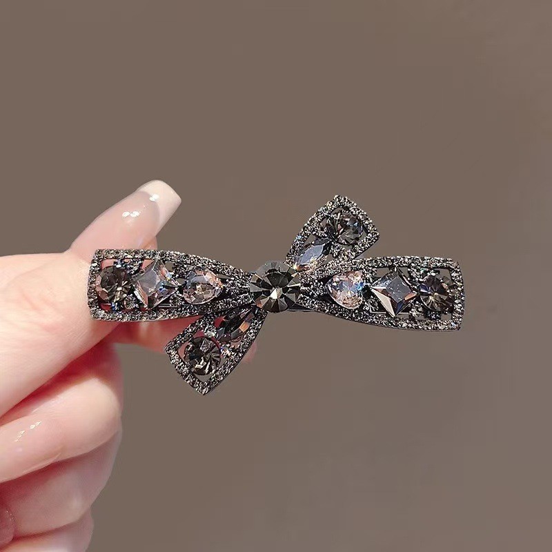 ラインストーンブラックリボンスプリングクリップライト高級ラインストーンヘアピンサイドクリップハイエンドヘアアクセサリー女性トップクリップヘアピン