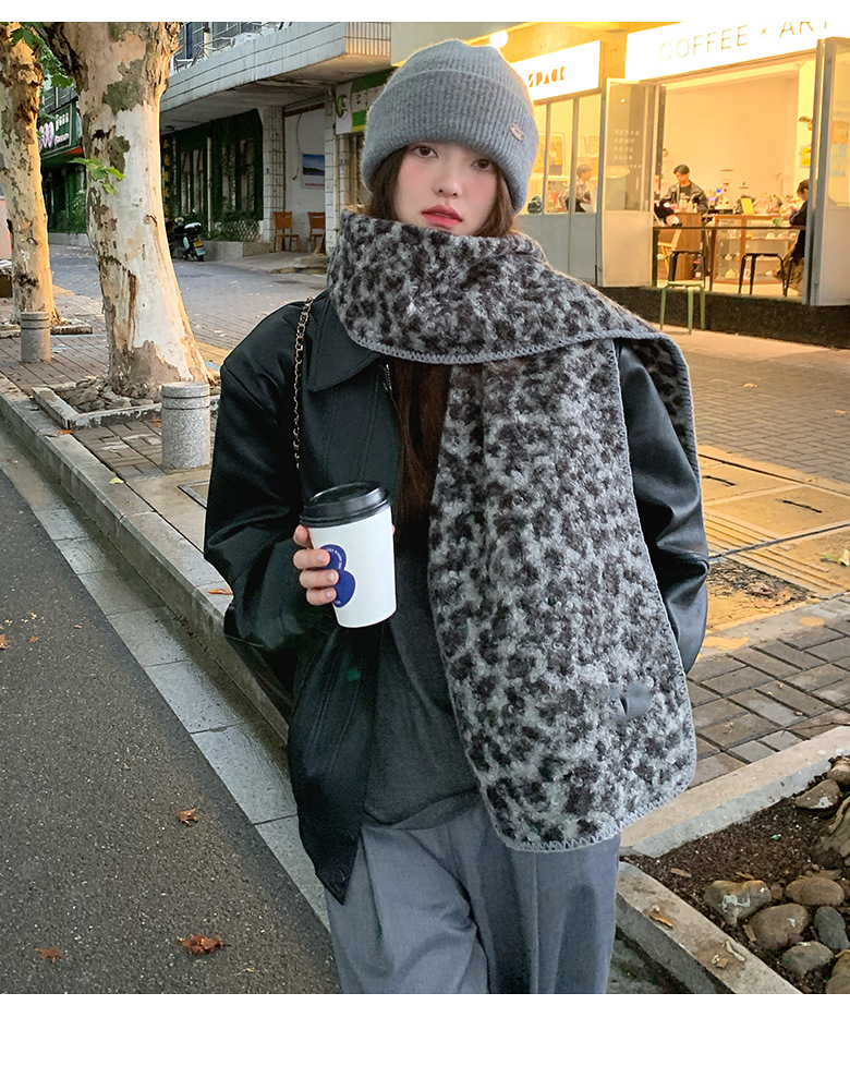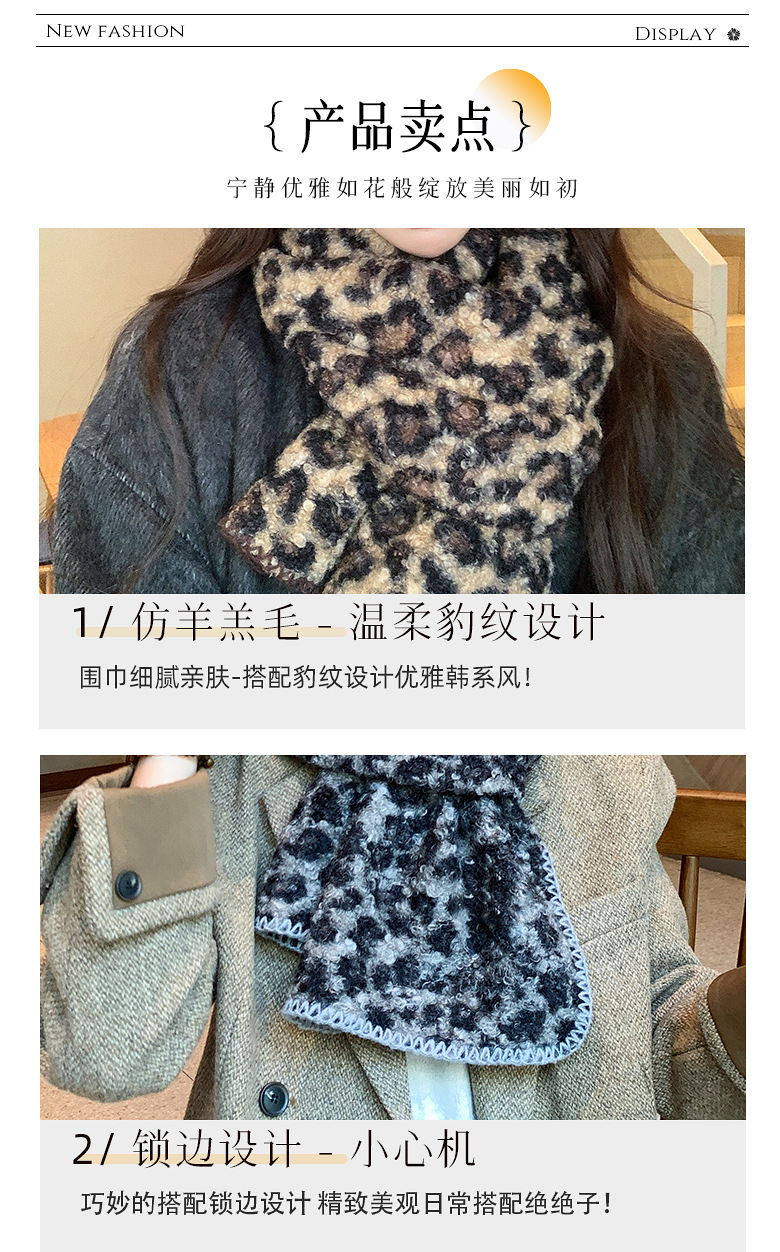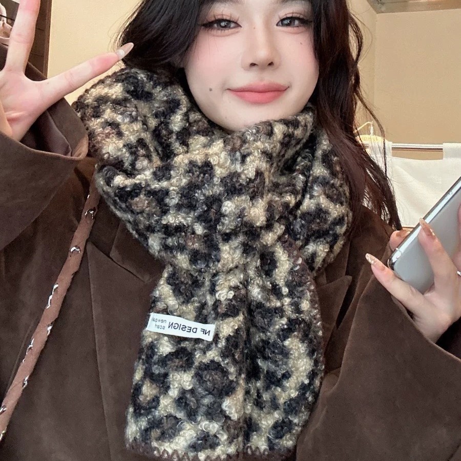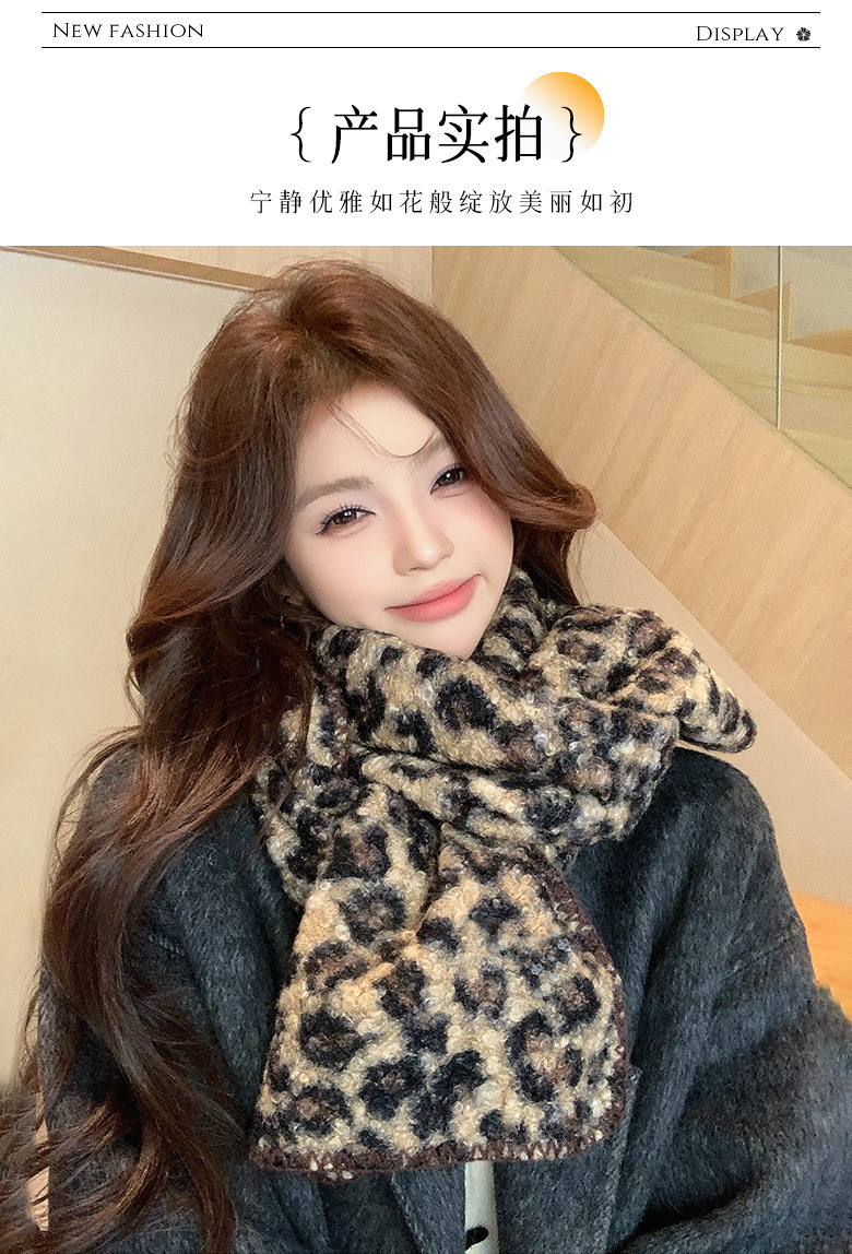 尊宿~豹纹高级感仿羊毛卷双面围巾女秋冬保暖时髦精拽姐复古围脖