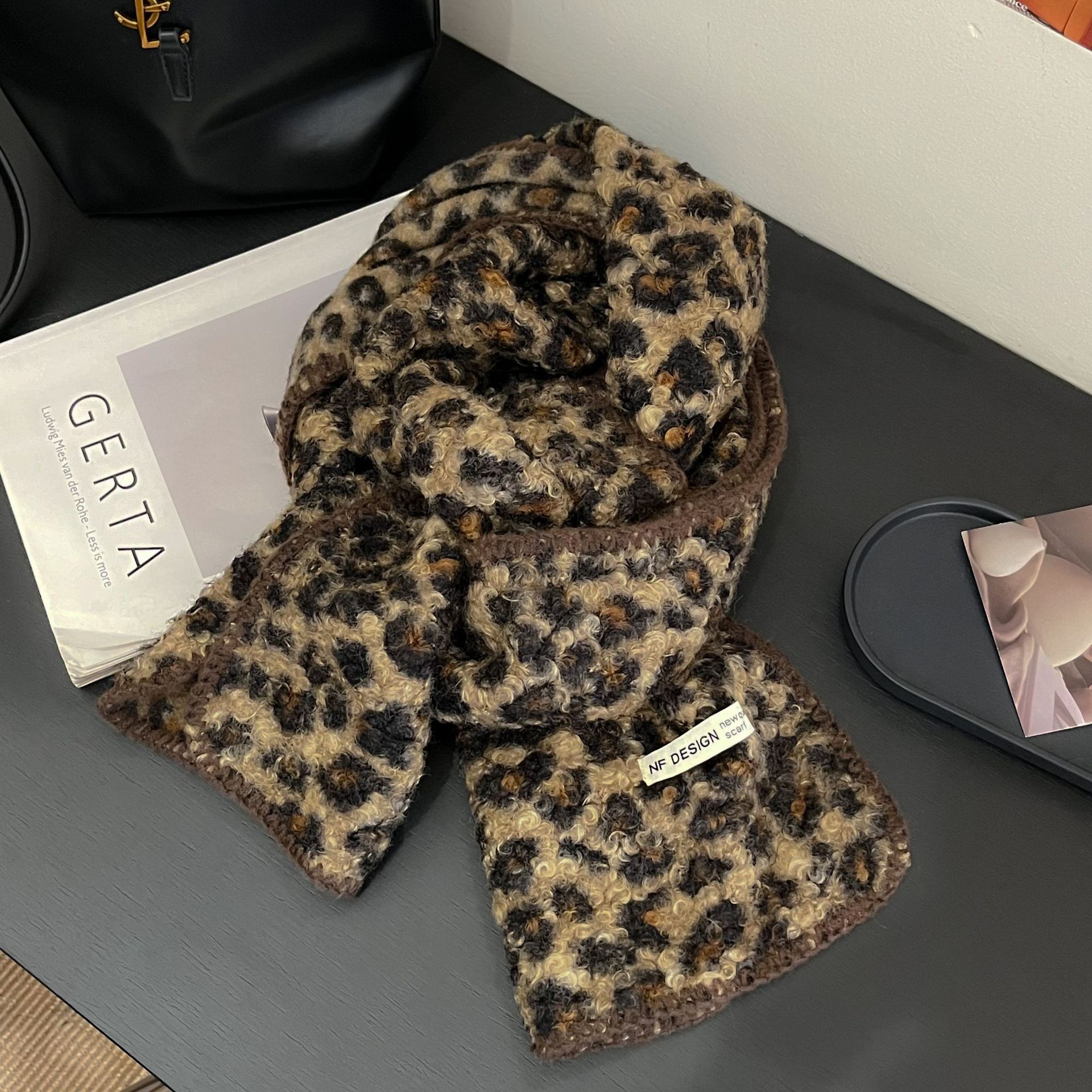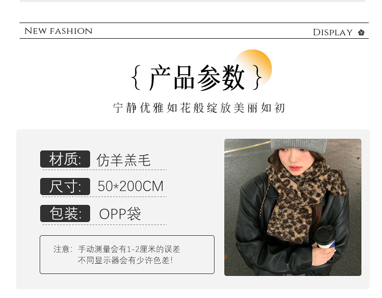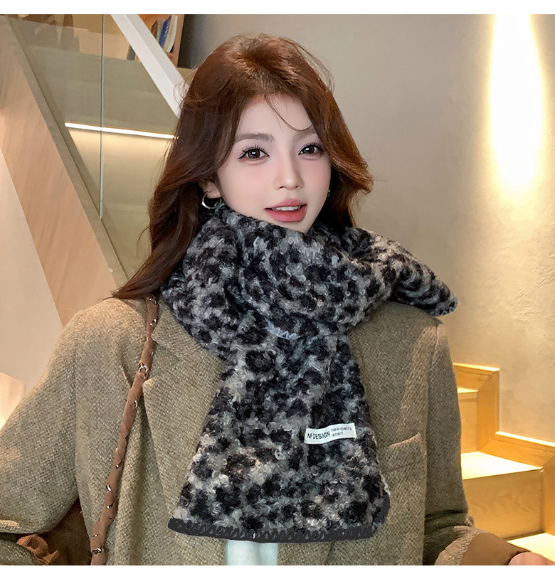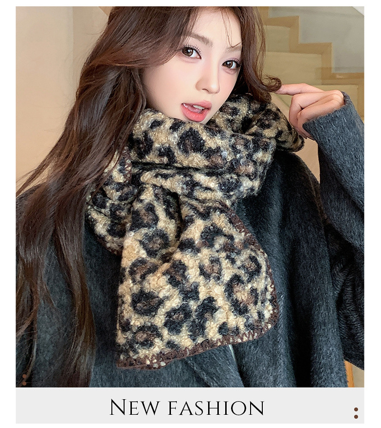 尊宿~豹纹高级感仿羊毛卷双面围巾女秋冬保暖时髦精拽姐复古围脖