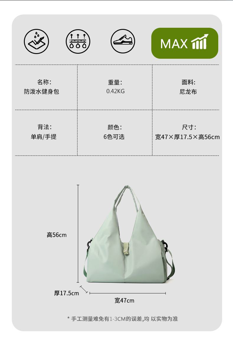 大容量瑜伽健身包牛津布女式单肩包独立鞋仓新款简约轻便旅行包
