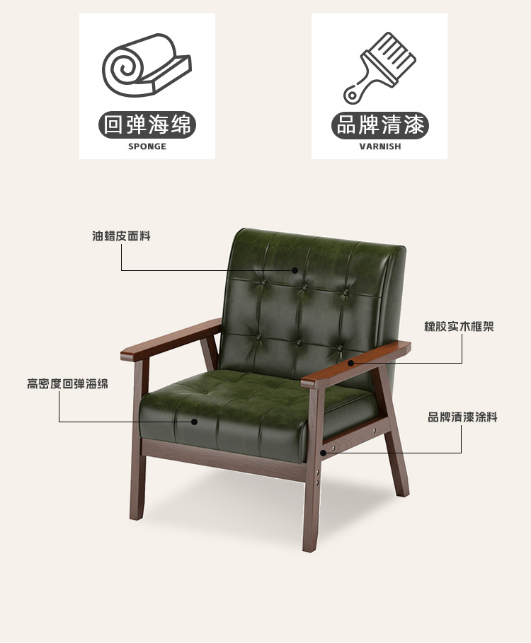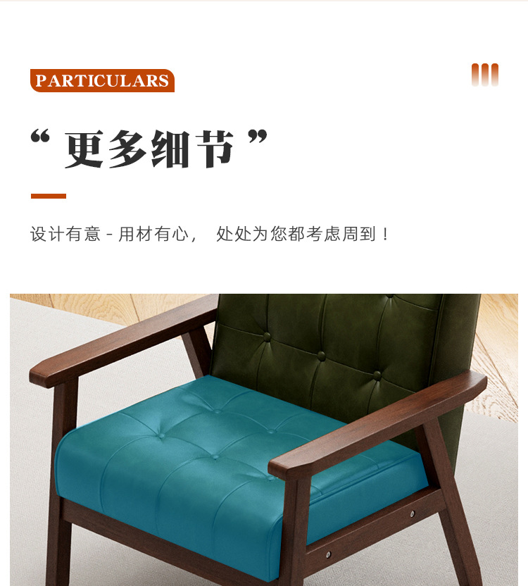 中古风理查德单人沙发椅法式复古客厅阳台休闲实木椅子家用扶手椅