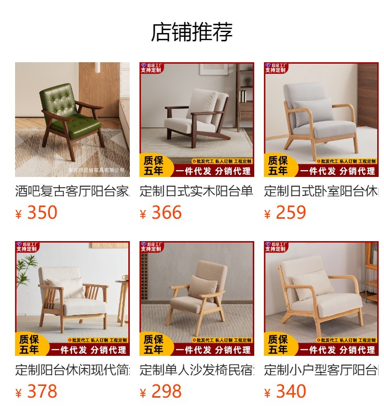 日本式寝室ベランダレジャー小戸型客間実木怠け者二人椅子一人小ソファー茶数組