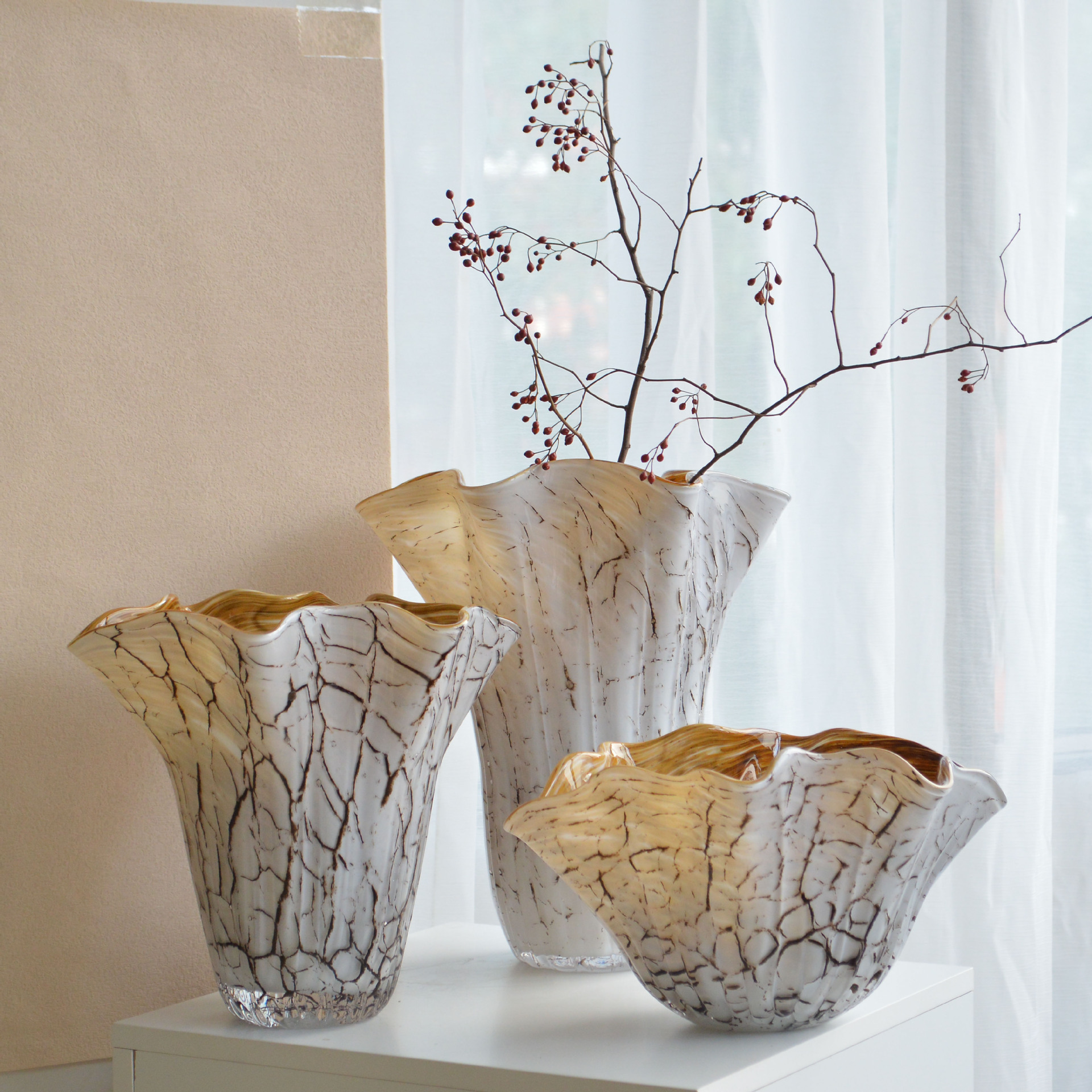 高度.厚度.工艺等),单品都具有个性,介意者慎购,手工吹制产品或多或少会产生气泡、柳 纹、划痕等包括其他手工痕迹,或者出现与链接宝贝标的尺寸出现误差都属于正常工艺现象,根本无法避免。希望各位买家能在购买前了解好玻璃花瓶本身的工艺特点,不要用此类商品与其他成百上千的商品作无谓的比较对产品要求极高的朋友请慎