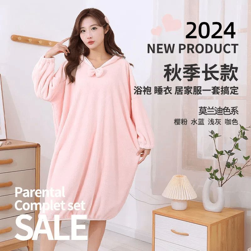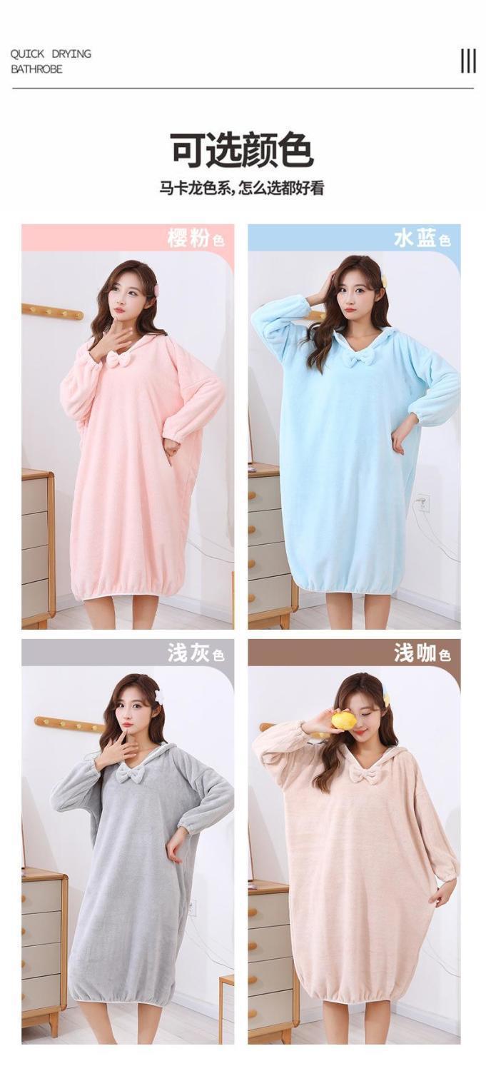 着られるバスローブ秋冬バスタオル女性家庭用コーラルフリース吸水ソフト速乾バススカート寝衣フード付きパジャマ