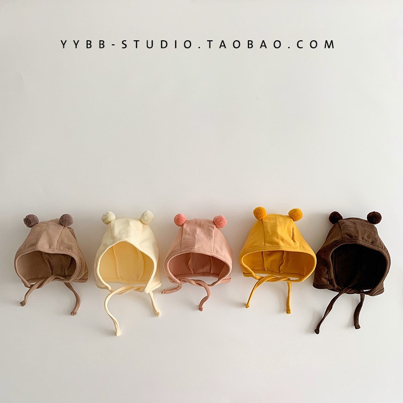 かわいくて萌えますIns韓国ベビー帽子春と秋の薄い綿0-6ヶ月男の子の秋の耳保護帽子
