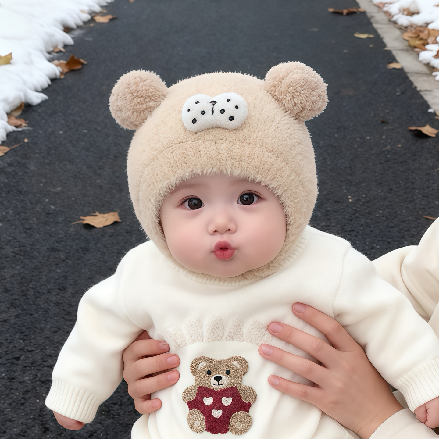 新款宝宝帽子冬季加厚毛绒可爱小猪卡通护耳包头防风小月龄婴儿帽