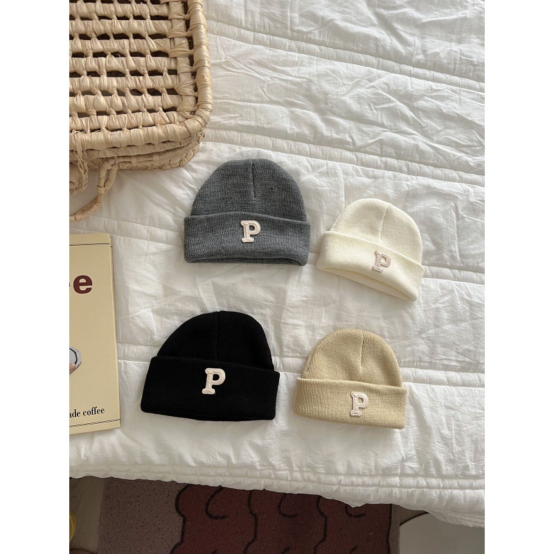 Ins韓国版シンプルアルファベットpマーク赤ちゃんニット毛糸カバーキャップ秋冬赤ちゃん帽子保温瓜皮帽子