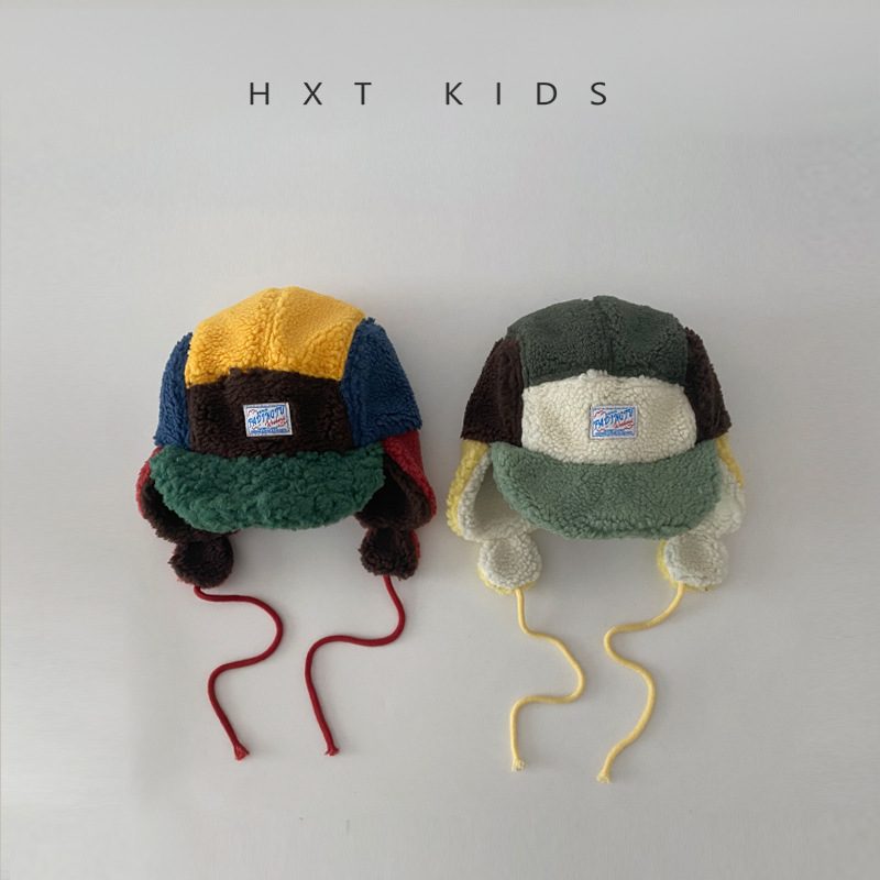 儿童雷锋帽冬季洋气拼色加绒内里保暖帽子潮童宝宝穿搭护耳帽冬酷