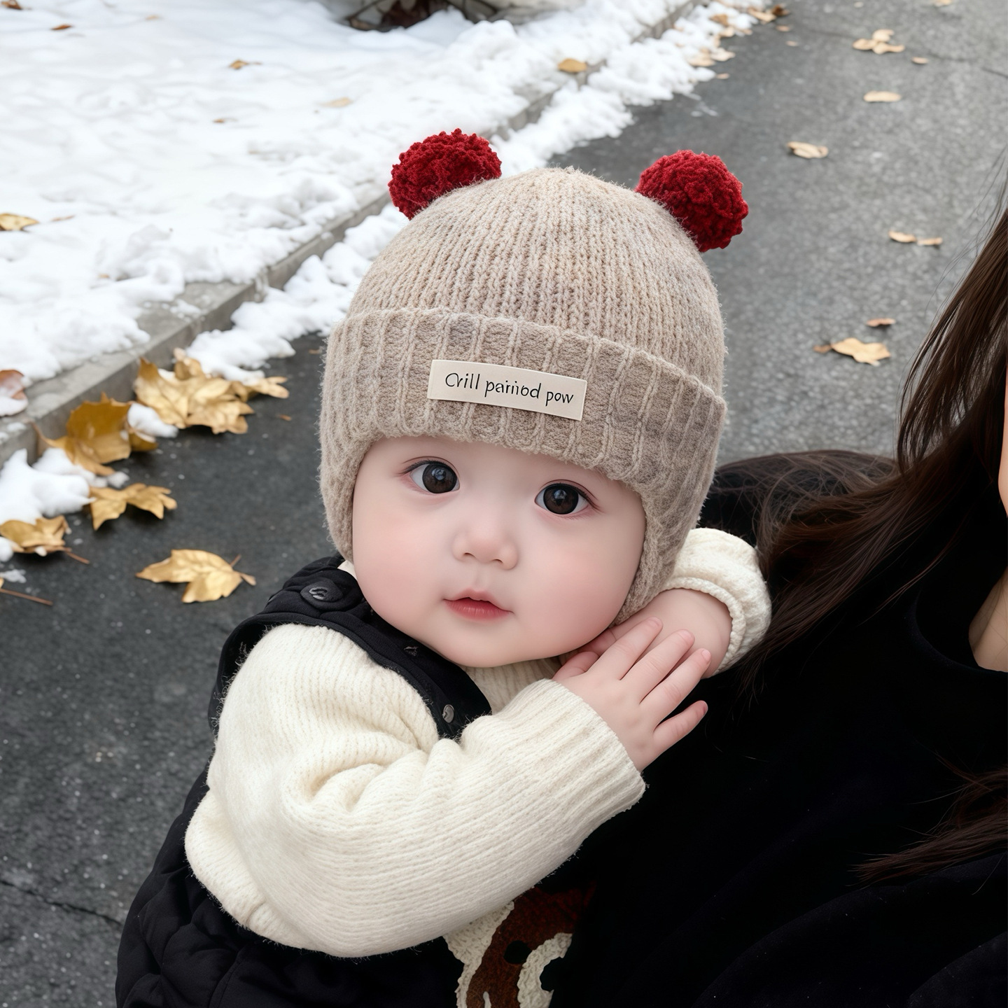 婴儿帽子冬天毛线帽男女宝宝小月龄加厚保暖针织护耳帽防风帽可爱