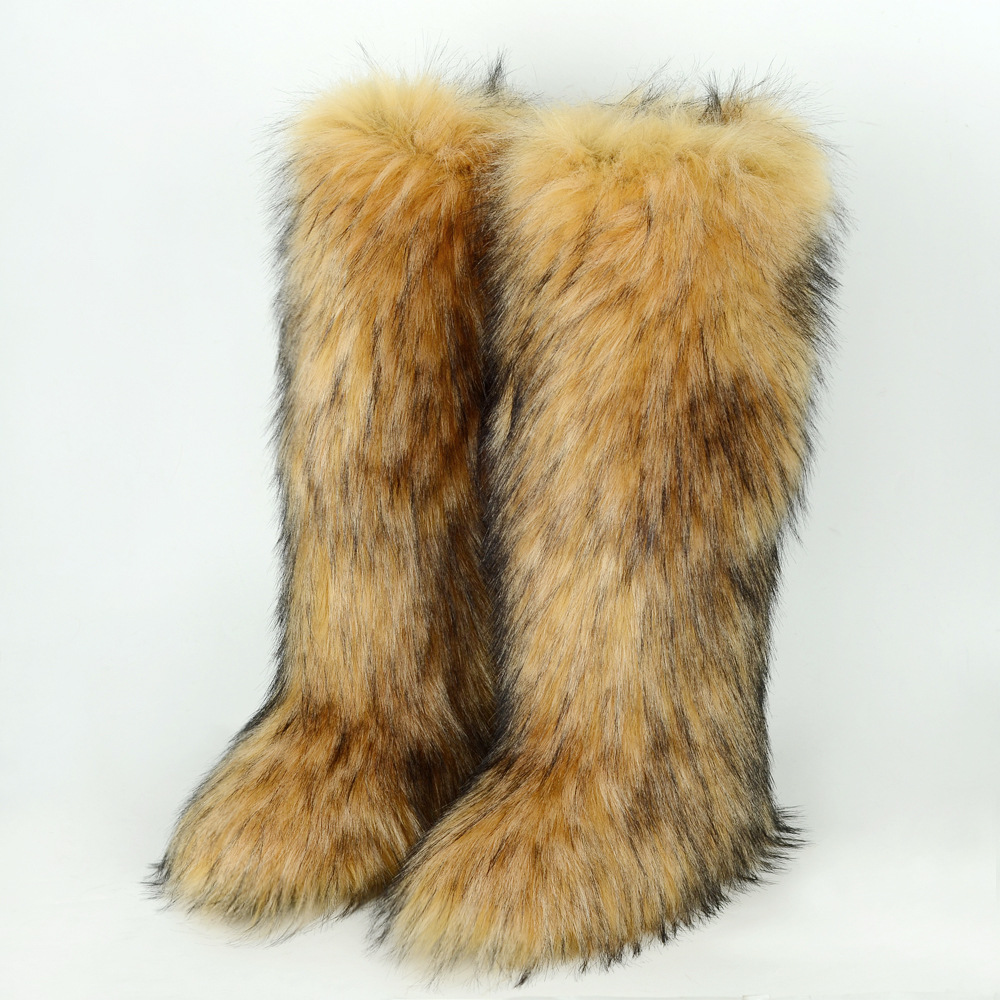 外贸跨境长筒50cm雪地靴仿狐狸毛貉子毛靴子冬季保暖时尚辣妹靴