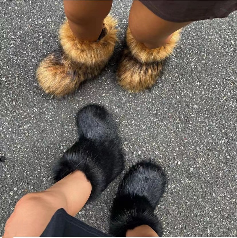 跨境毛毛雪地靴保暖高筒鞋子冬季仿皮草中筒短筒毛绒靴子长筒女