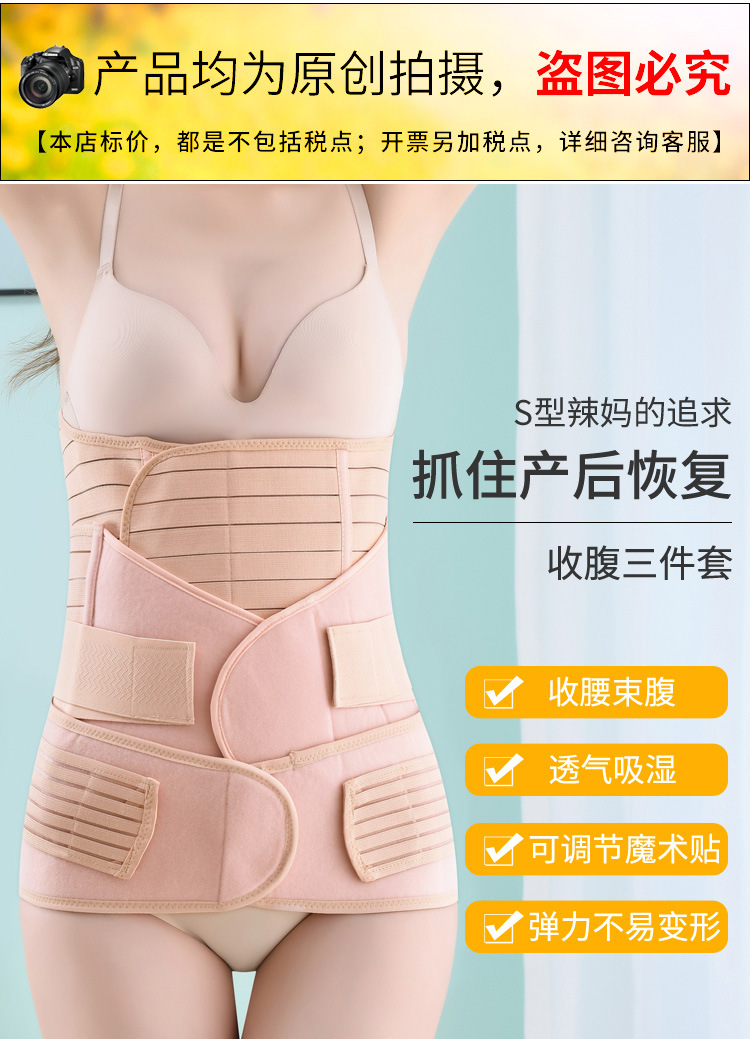 收腹带三件套弹力产后收腹带束腹带收腰顺产剖腹产透气缚带跨境