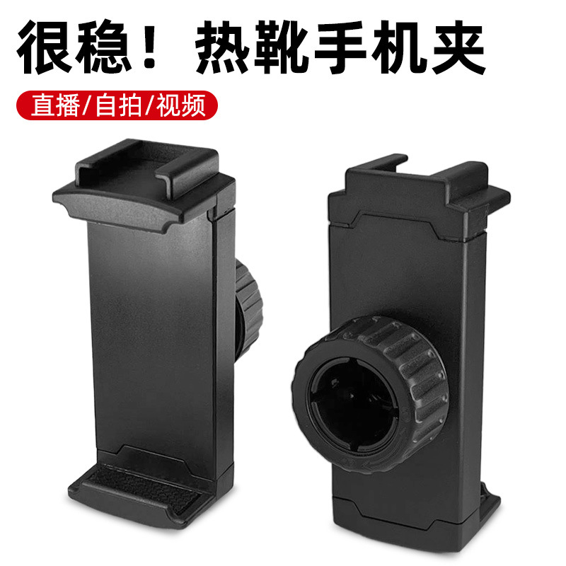 メーカー直供回転自在雲台一字クリップ部品携帯電話直播スタンド二穴携帯電話クリップ