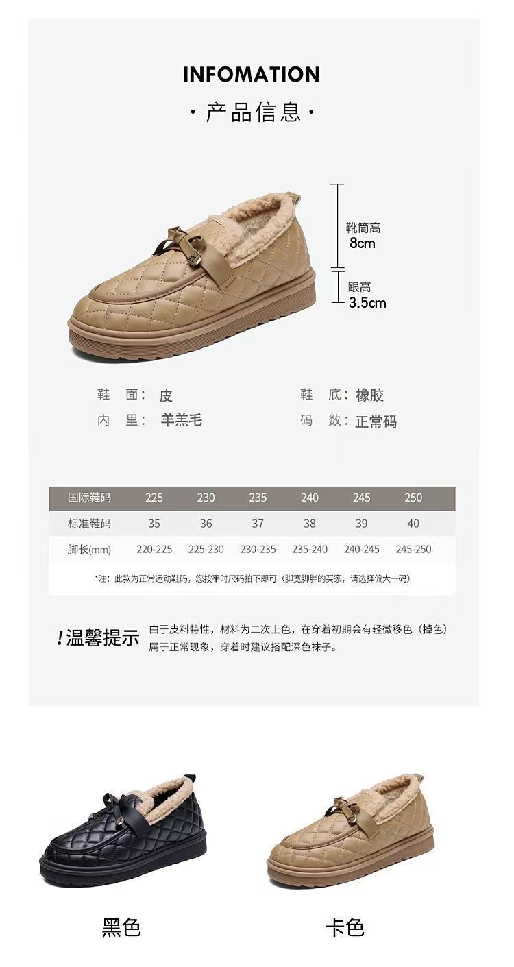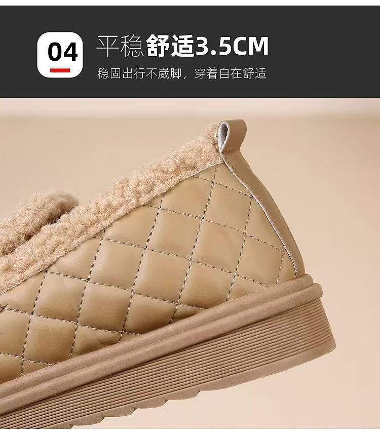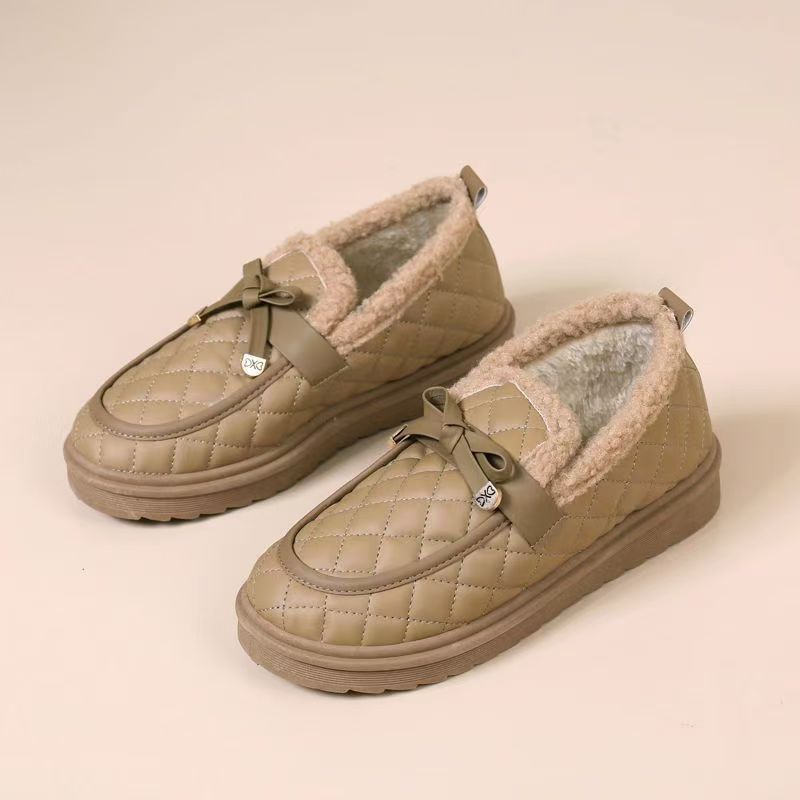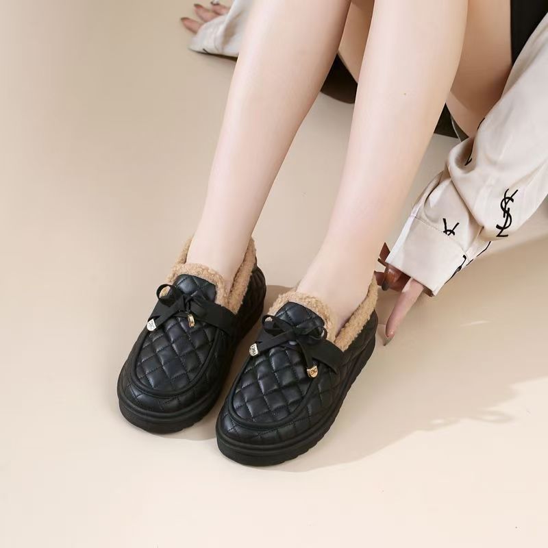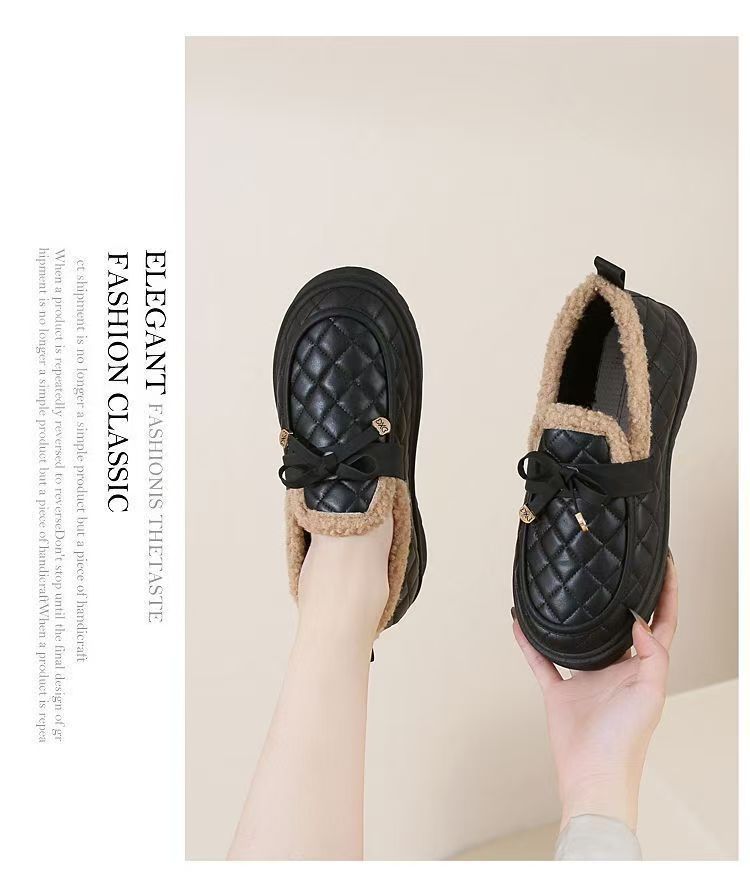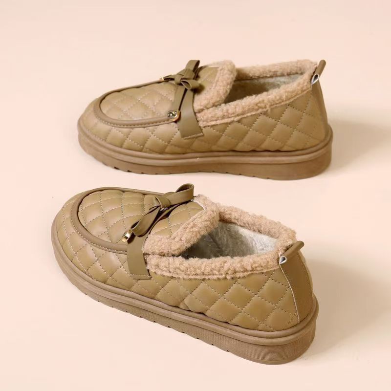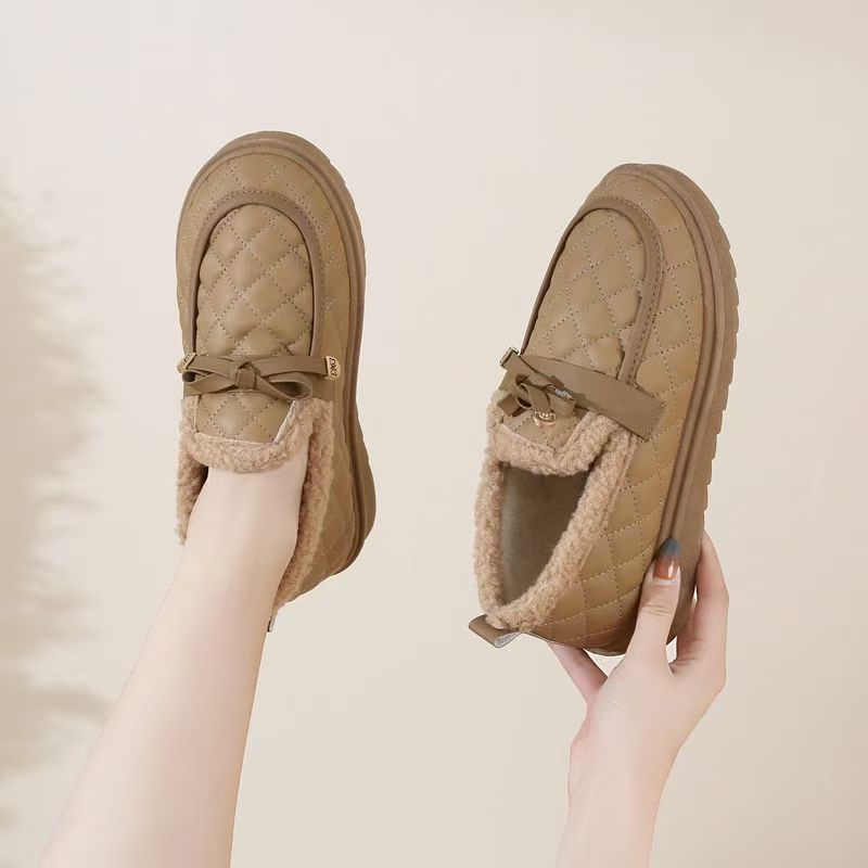 冬用レディース耐摩耗性厚手綿靴、柔らかい底と表面の豆豆シューズ、滑り止めフラットソール、カジュアルでおしゃれなファーシューズ