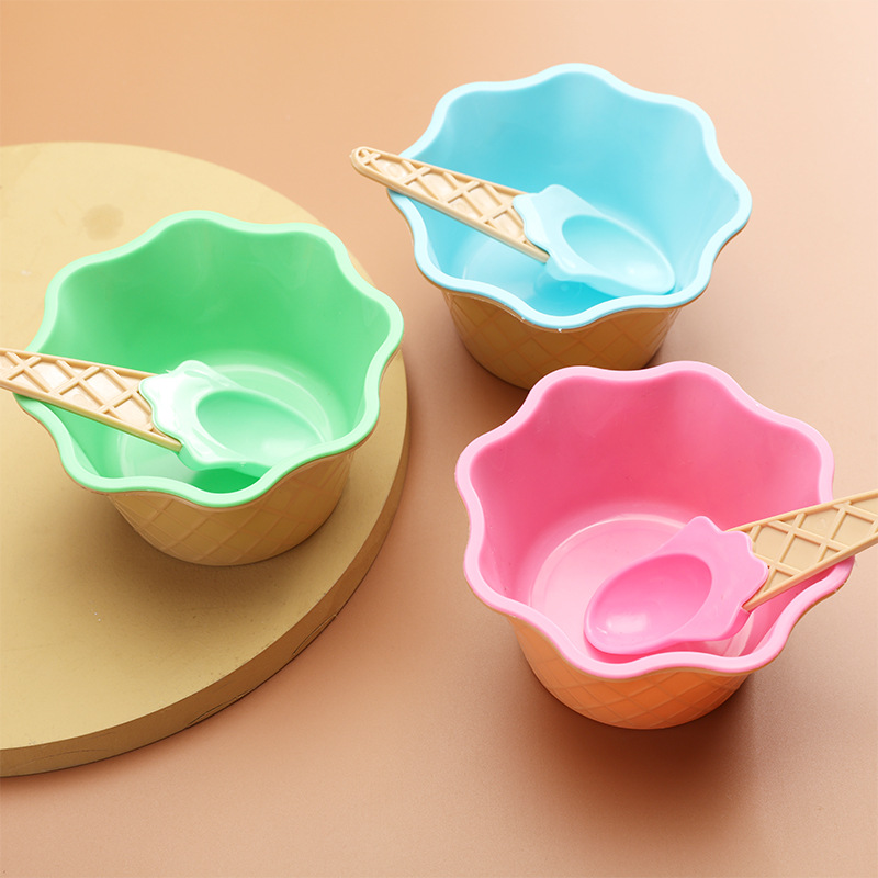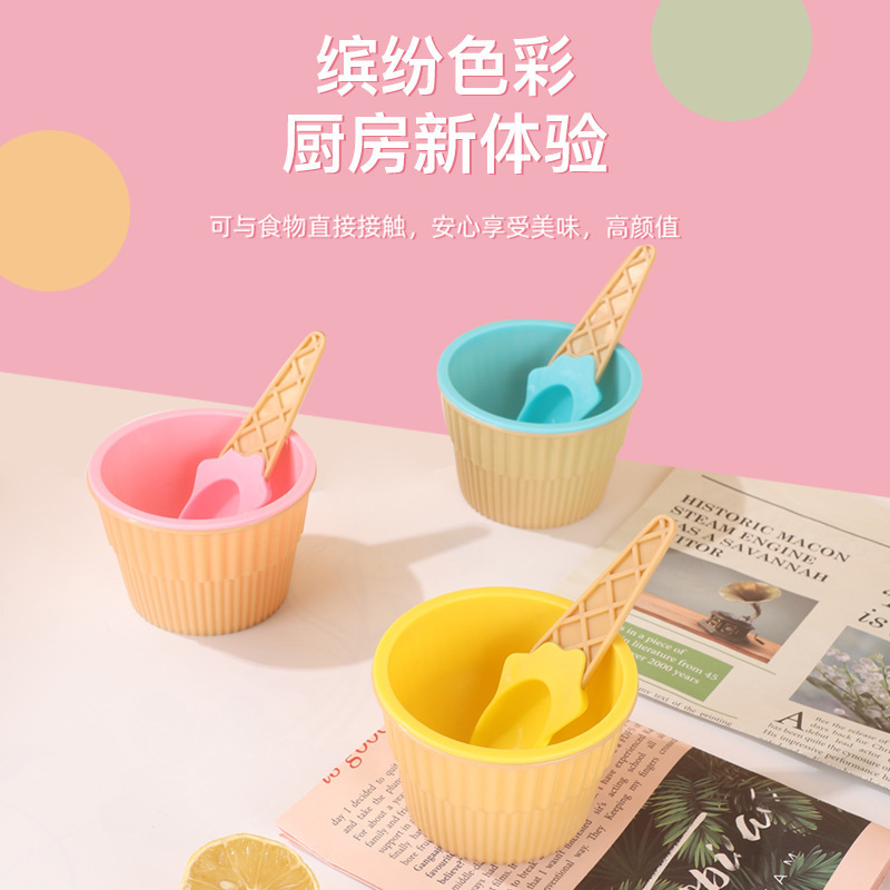 アイスクリームボウルPPアイスクリームスプーンアイスクリームカラー泥ボウルセットクリエイティブ児童アニメ二重卸売りアマゾン